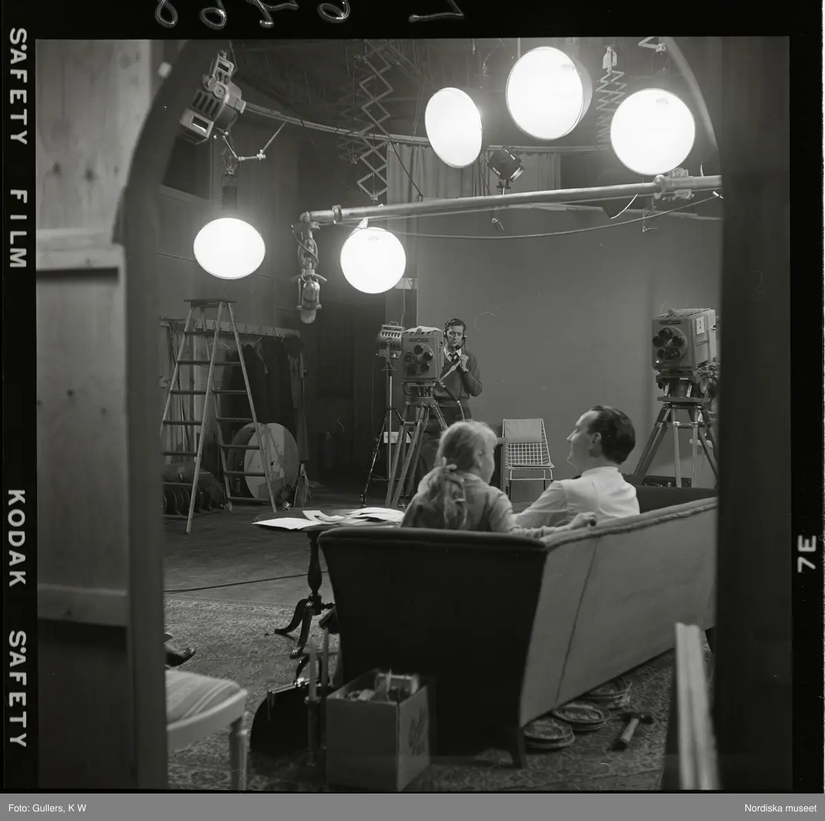 2391 Television Tak för TV; Sändning; Från utsändn. T-V-Studion + KWG på TV . Fotograf K W Gullers i TV-studio vid inspelning av fotografi-kurs. "Gullers fotokurs"