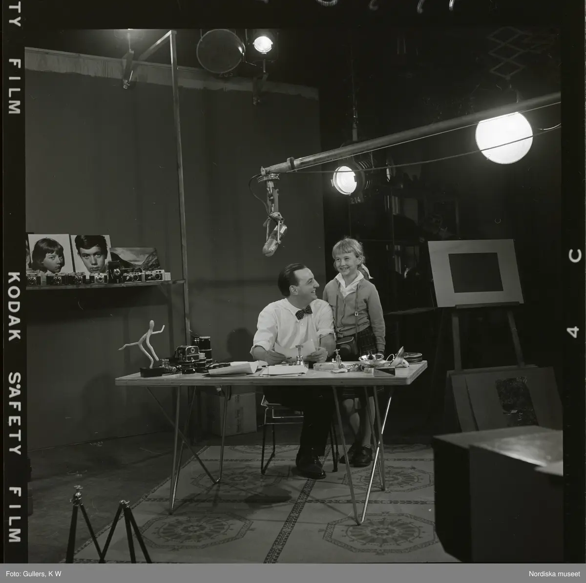 2406 Television Tak för TV; Sändning; Från utsändn. T-V-Studion + KWG på TV . Fotograf K W Gullers i TV-studio vid inspelning av fotografi-kurs. "Gullers fotokurs"