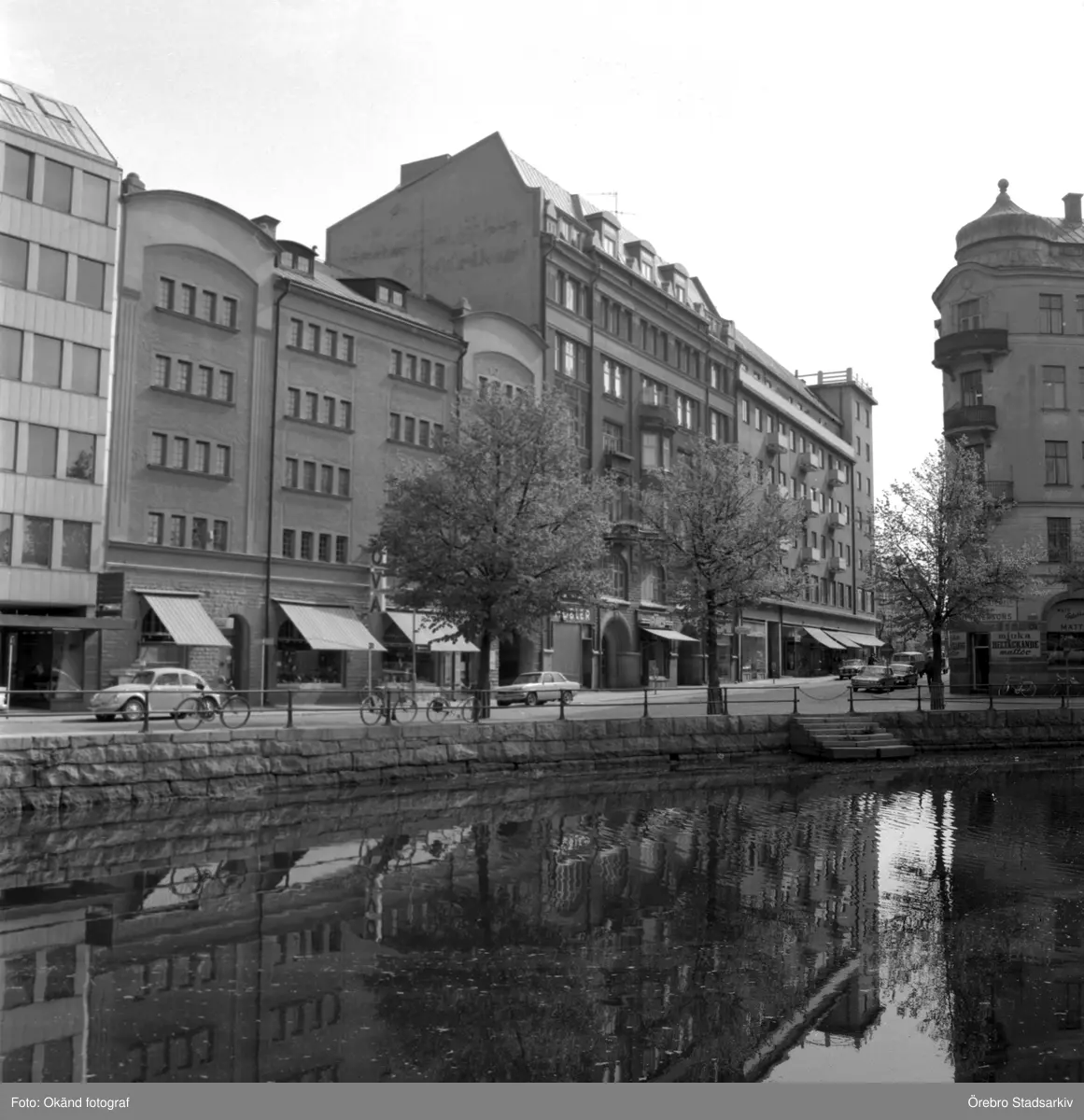 Titel:Husen på Järntorgsgatan speglar sig i Svartån, 1970-tal