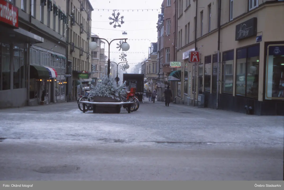 Julbelysning över Nygatan taget från Drottninggatan, 1980-tal