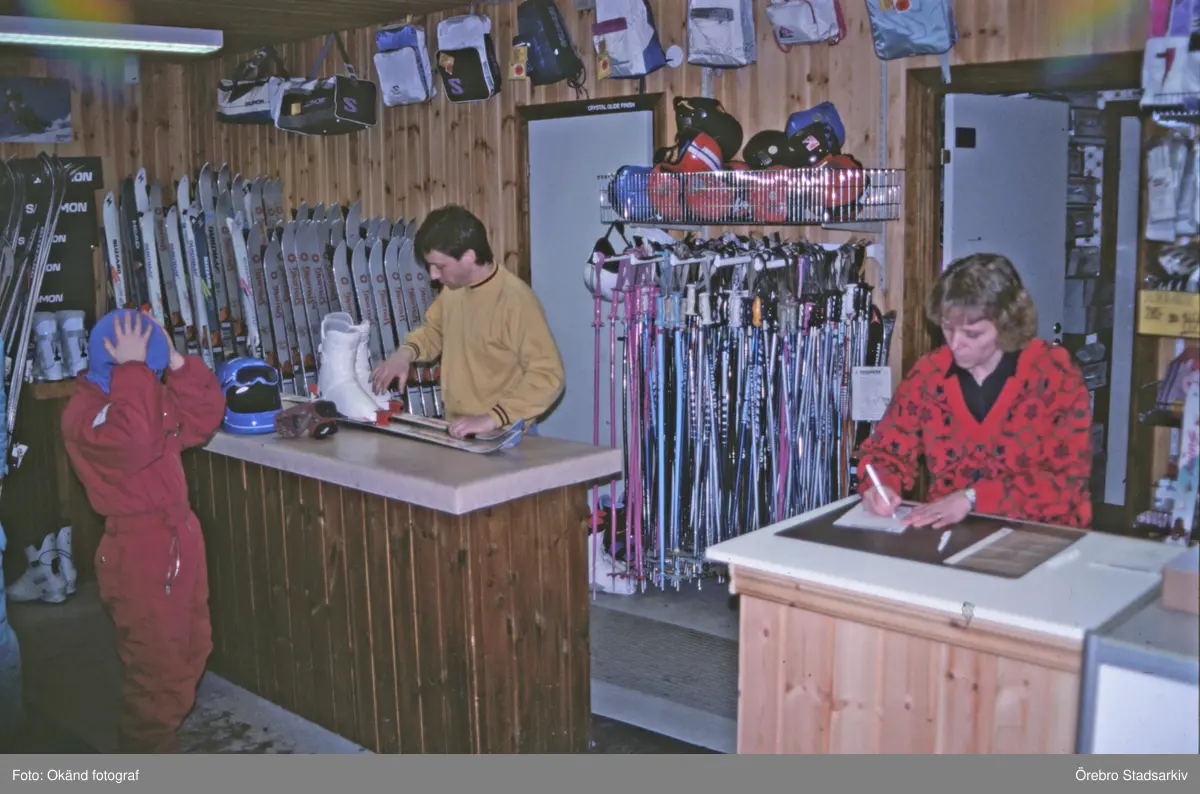 Uthyrningsdisken i skidshopen vid Storstenshöjden, 1970-tal
