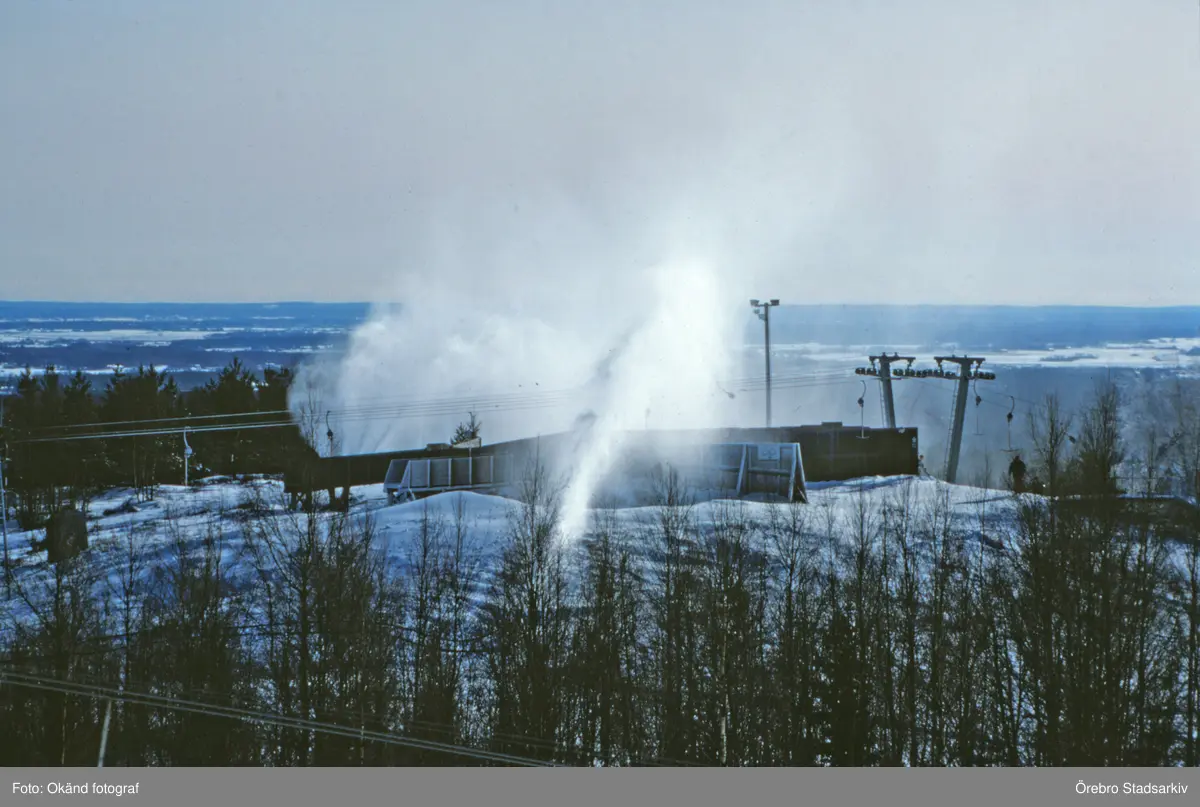 Snökanonen lägger ut snö i Storstenshöjden, 1970-tal