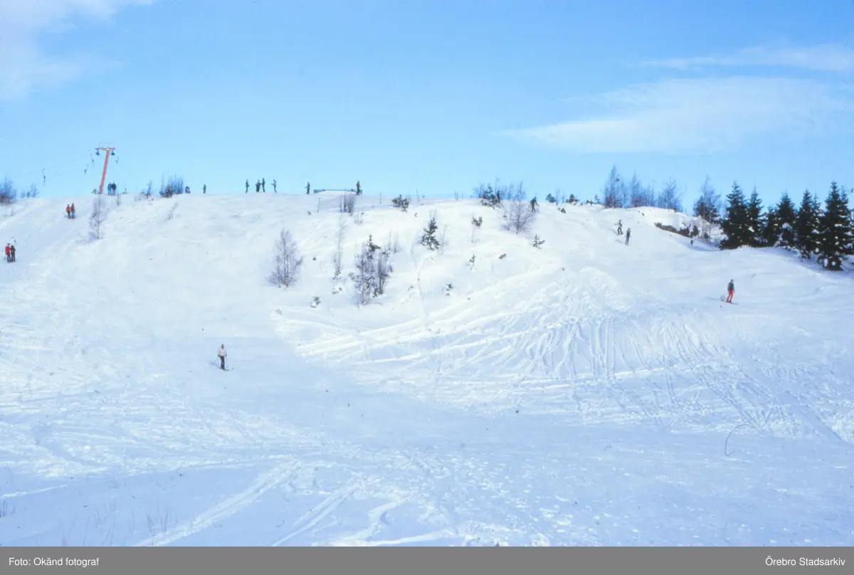 Stillsam skidåkning i Storstenshöjdens slalombacke, 1970-tal