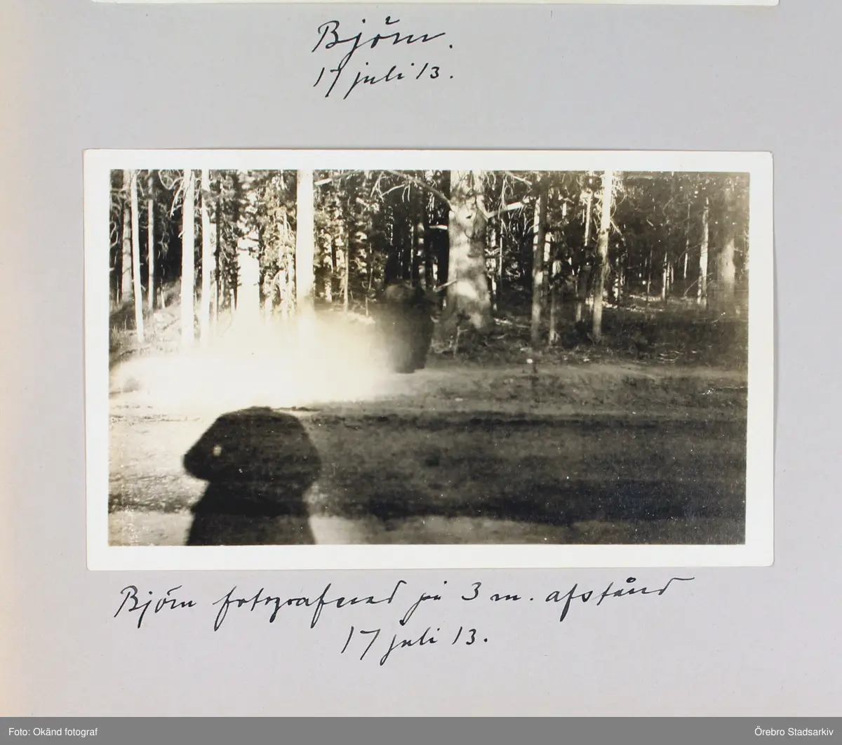Björn fotograferad på ca: 3 meters avstånd, den 17:e juli 1913