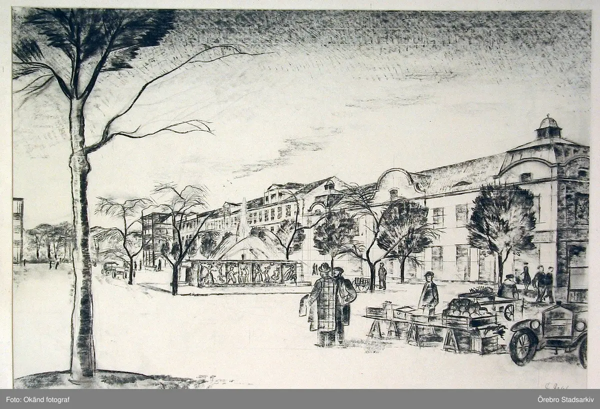 Ritningsförslag för utsmyckning av Stortorget med fontän, 1933