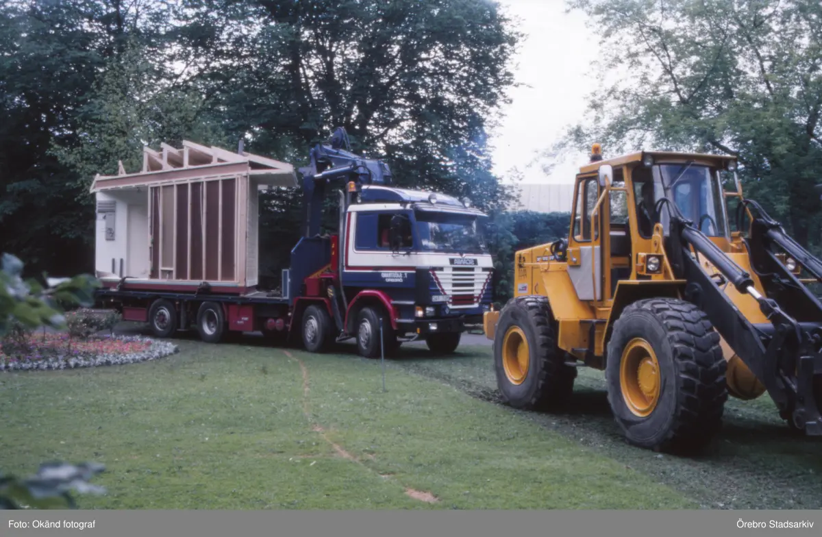 Montering av serveringsbyggnad i Stadsparken, 1988