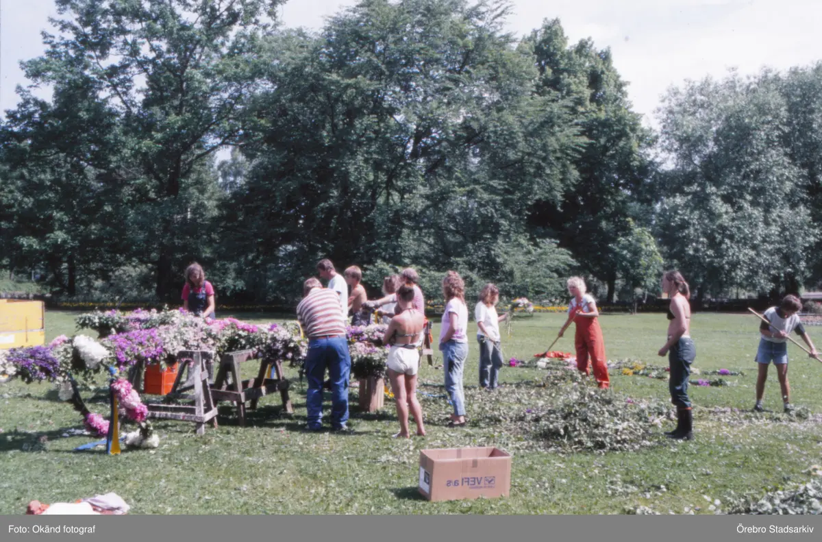 Midsommarstången kläds i Stadsparken, 1988