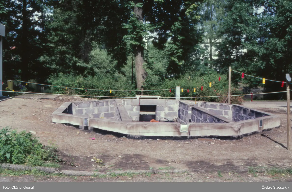 Montering av serveringsbyggnad i Stadsparken, 1988