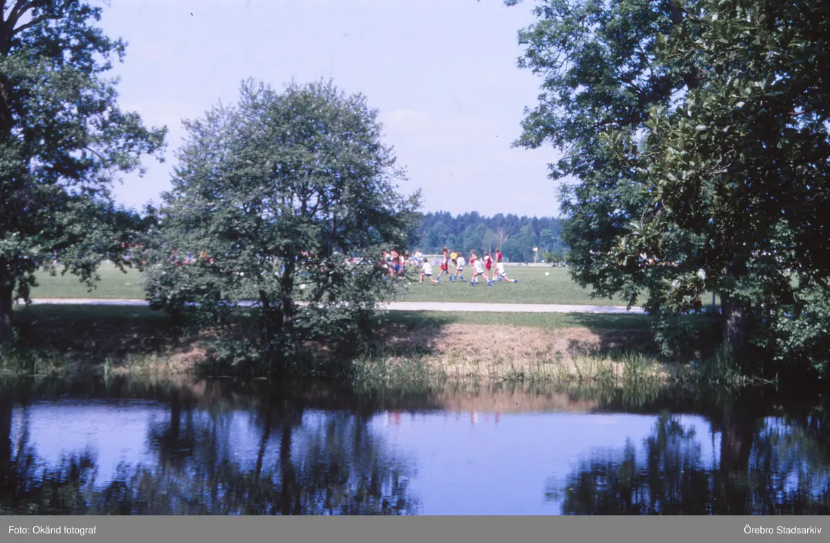 Uppvärmning inför fotbollsmatch på Rosta Gärde, 1988