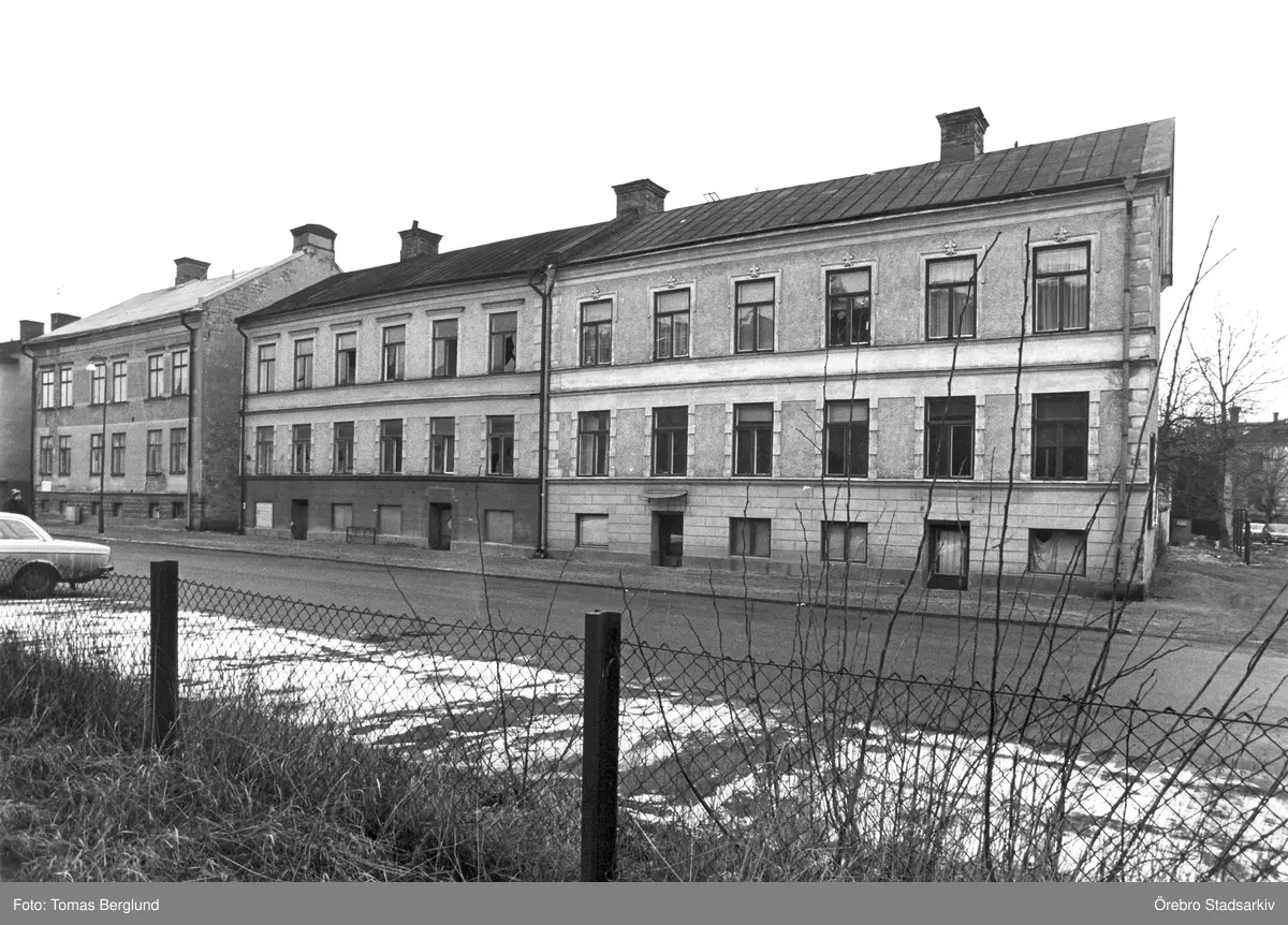 Länga med rivningshus på Norra grev Rosengatan, 1976