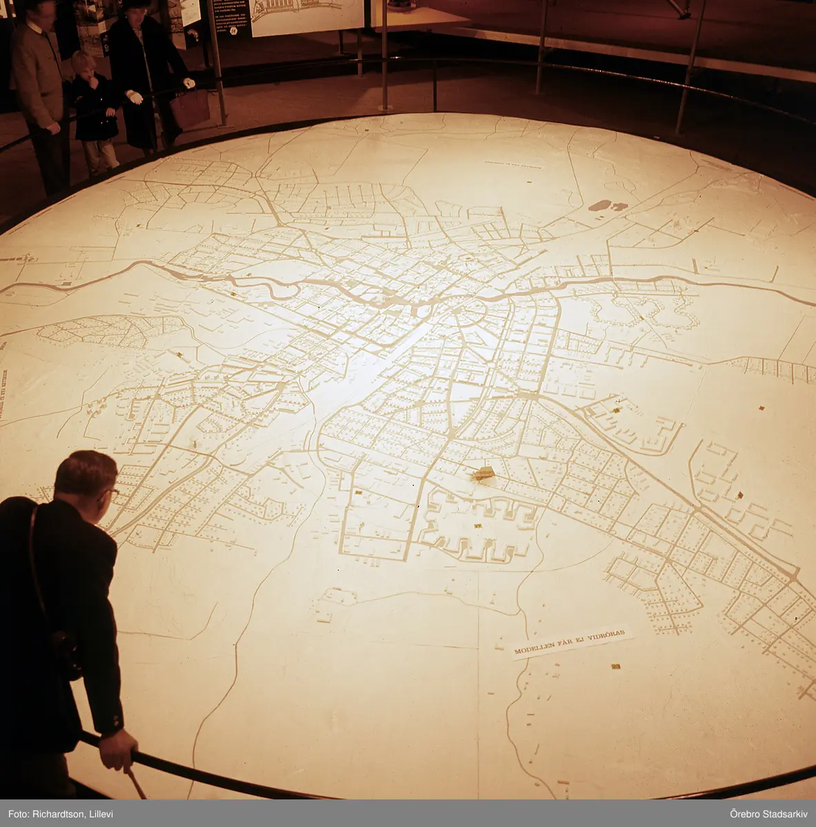 Besökare betraktar stadsmodell vid utställningen Örebro 700 år, 1965