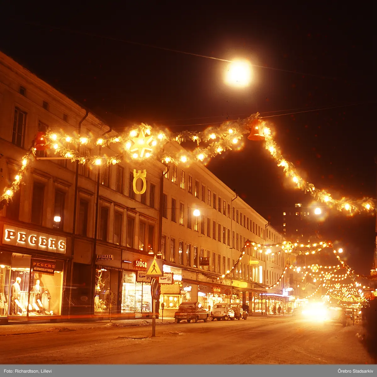 Julskyltning över Drottninggatan mot söder, 1960-tal
