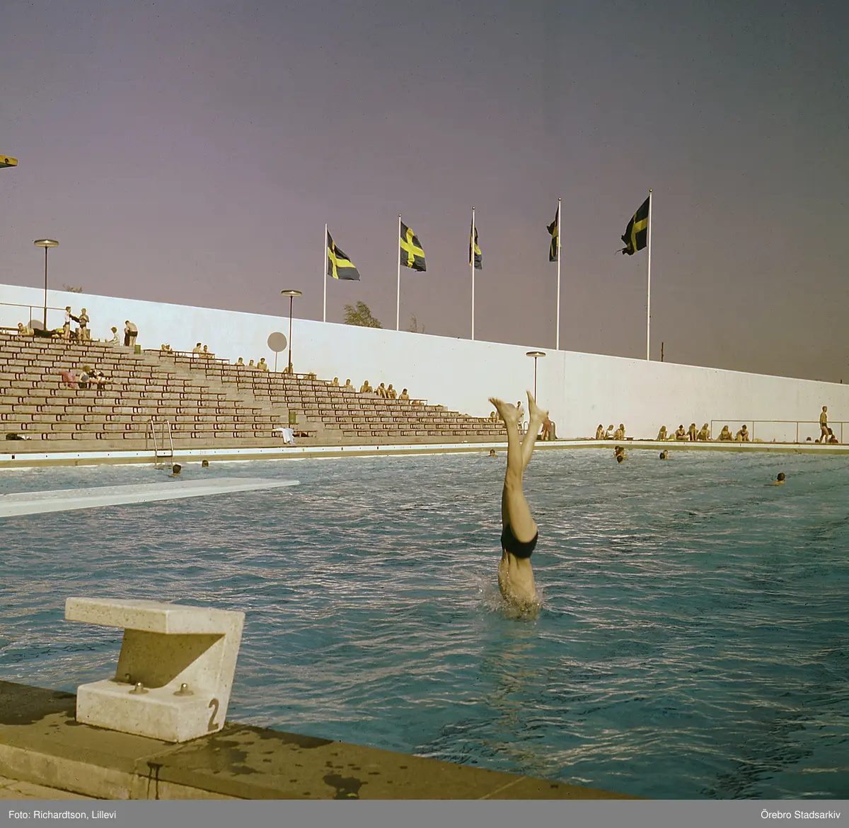 Dyk från hopptorn vid Gustavsviksbadet, 1960-tal