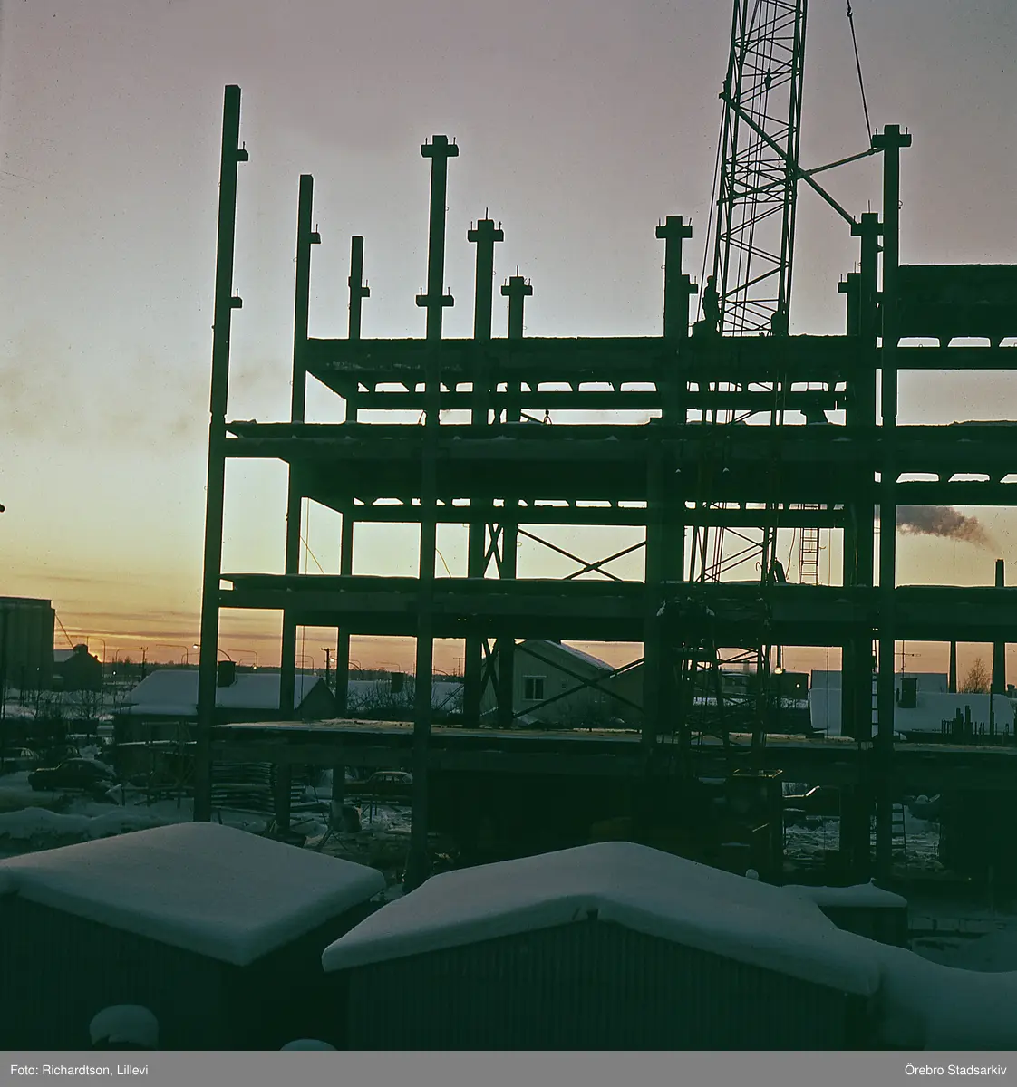 Byggställningar vid Stadsbyggnadshus på Åbylundsgatan, 1970-tal