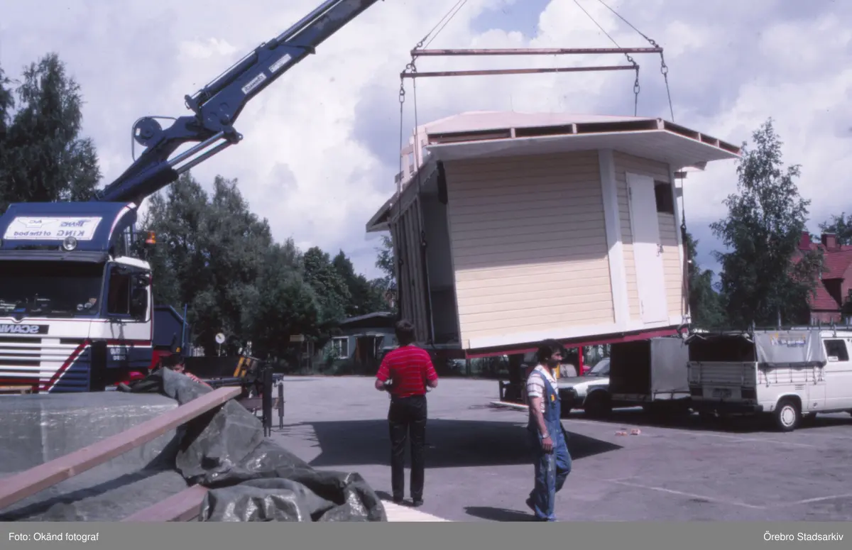 Montering av serveringsbyggnad i Stadsparken, 1988