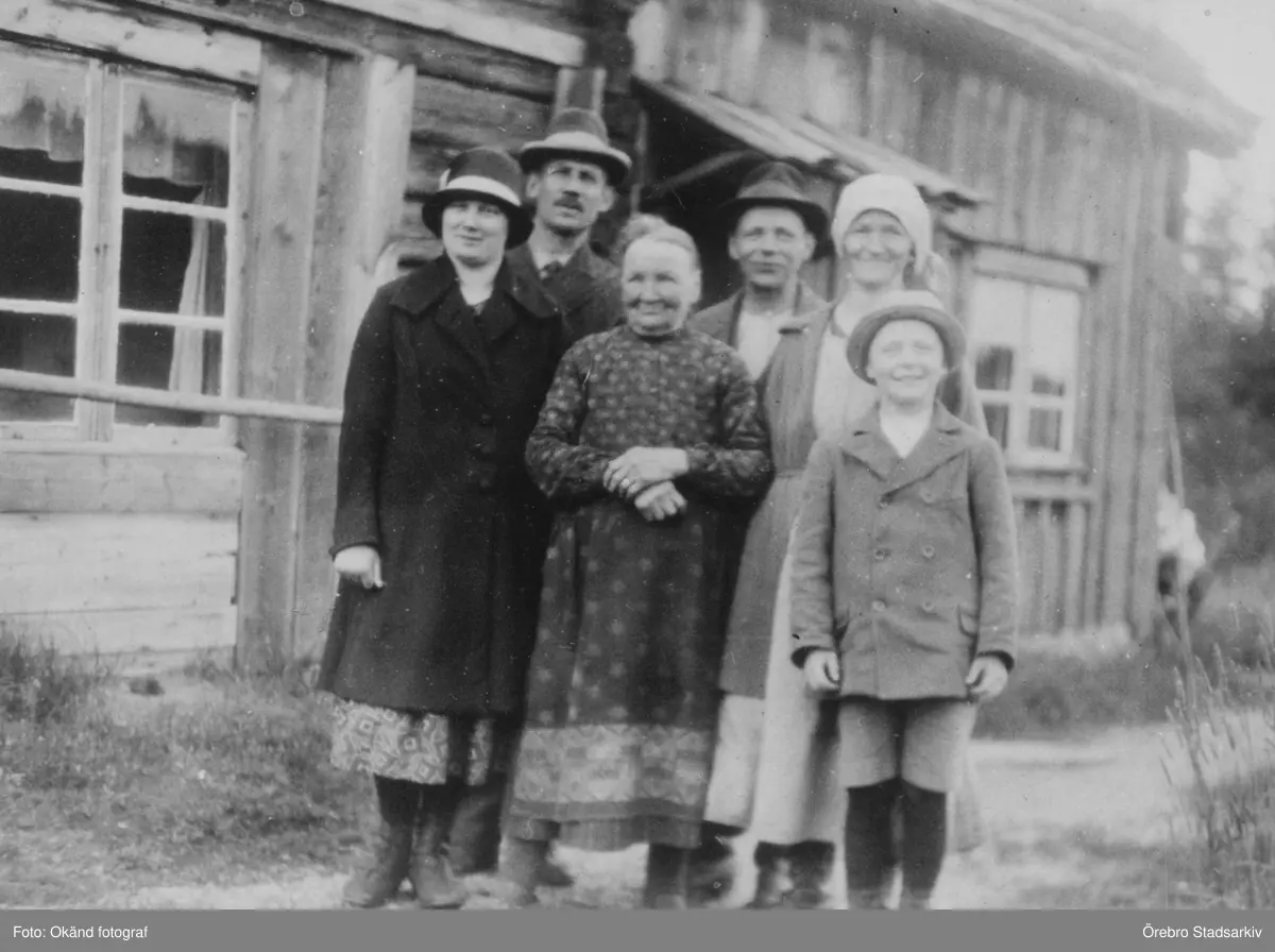 Grupp framför hus, 1920-tal