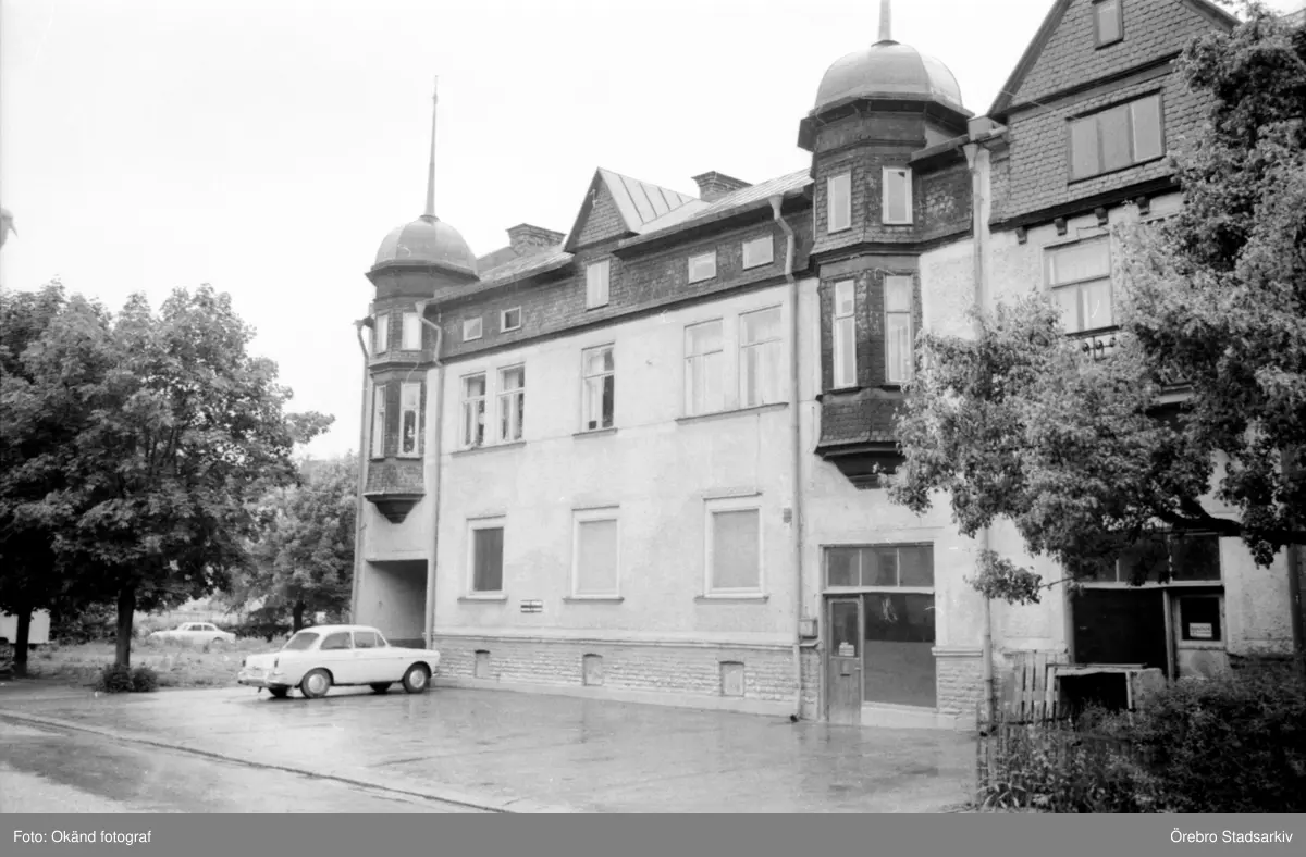 Byggnad med tak och burspråk i överlappande träpanel, 1970-tal