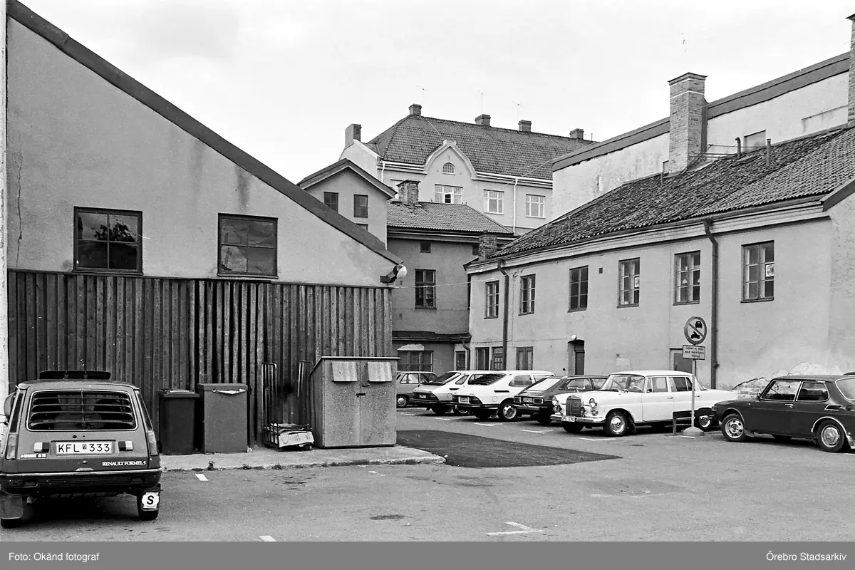 Bakgård med parkering på Stortorget 13 , 1980-tal
