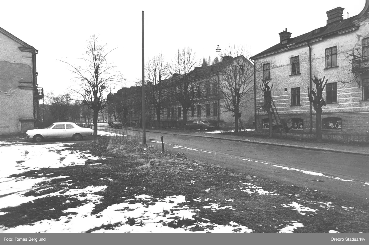 Länga med rivningshus på Skolgatan 21, 23, 1976