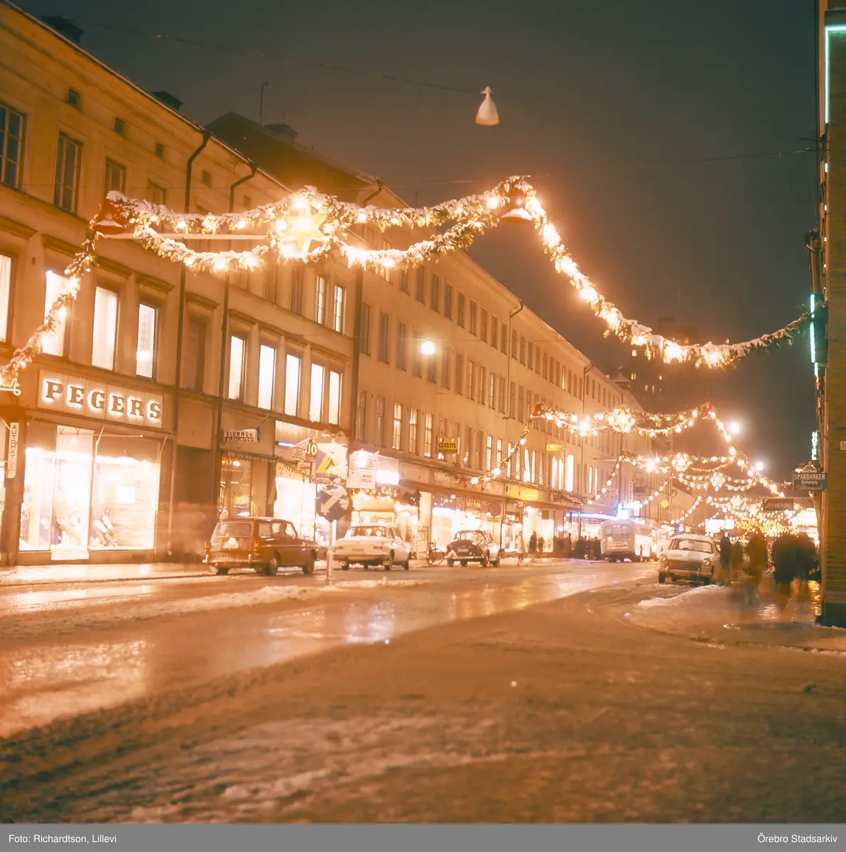 Julbelysning på Drottninggatan mot söder, 1960-tal