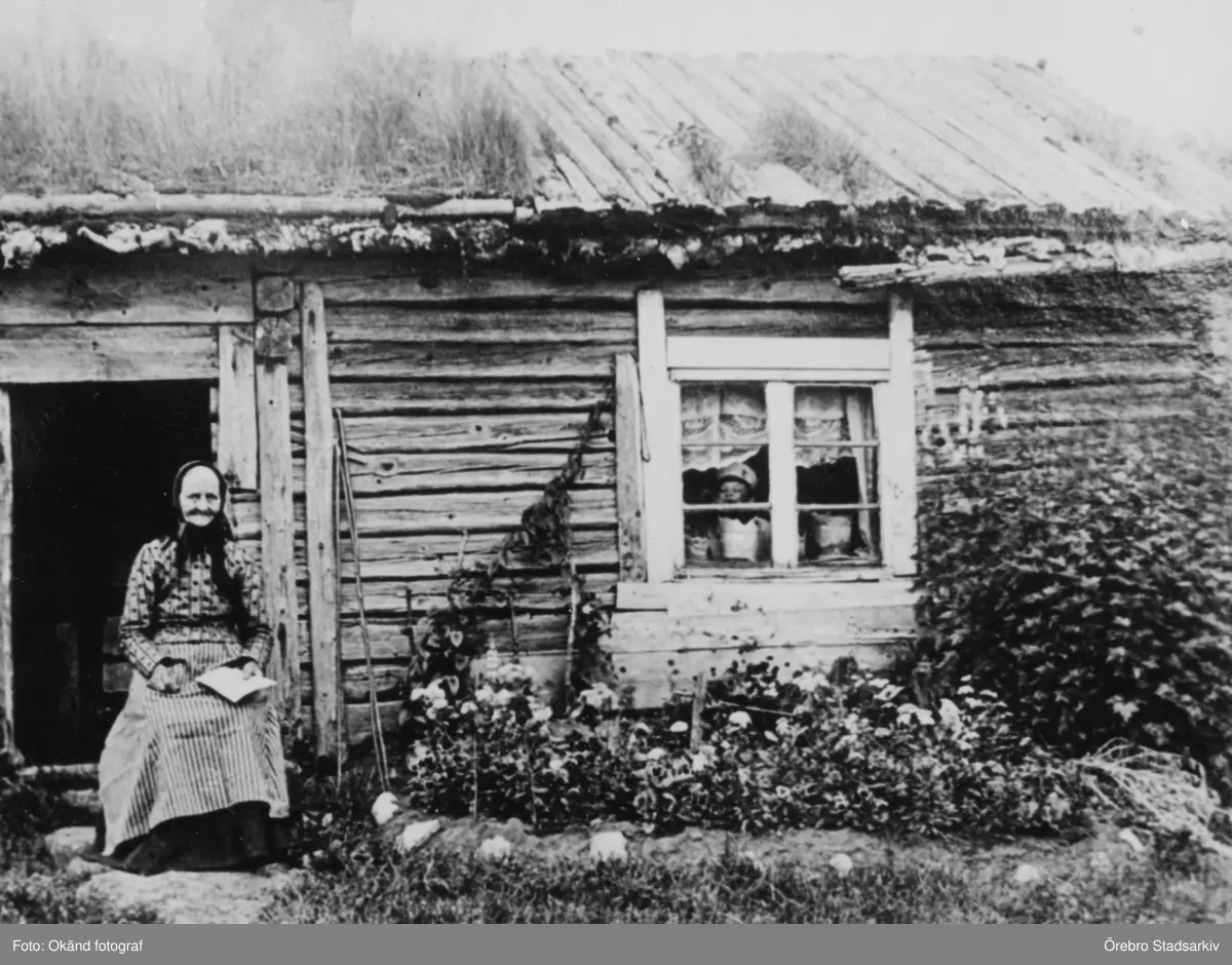Dammsjö-Lotta utanför sin stuga, 1880-tal
