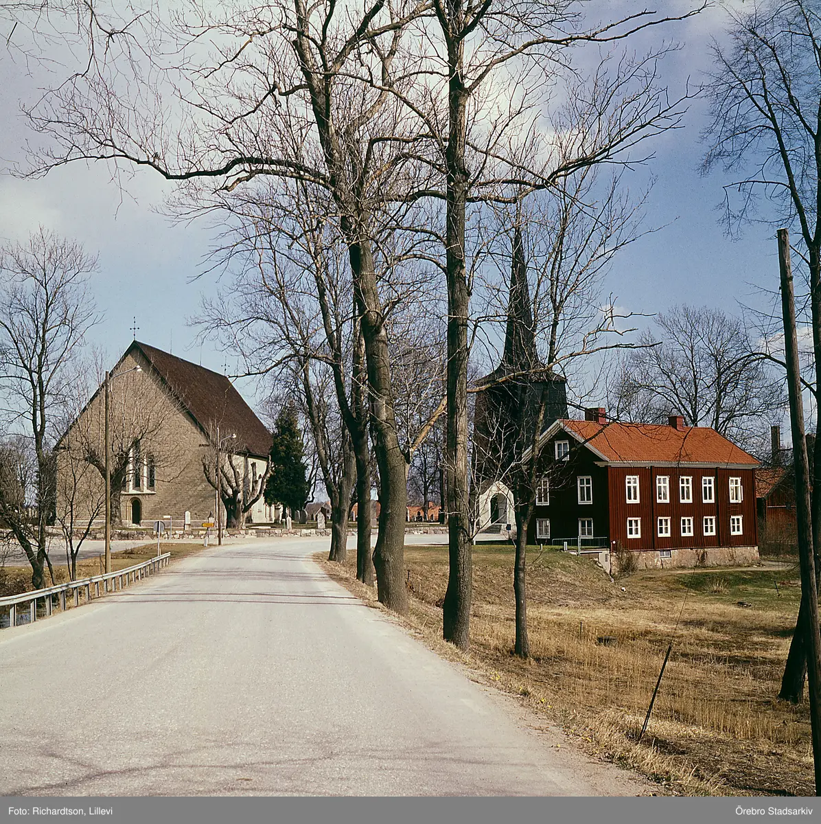Sköllersta kyrka och försmlingshem, 1975-04-17
