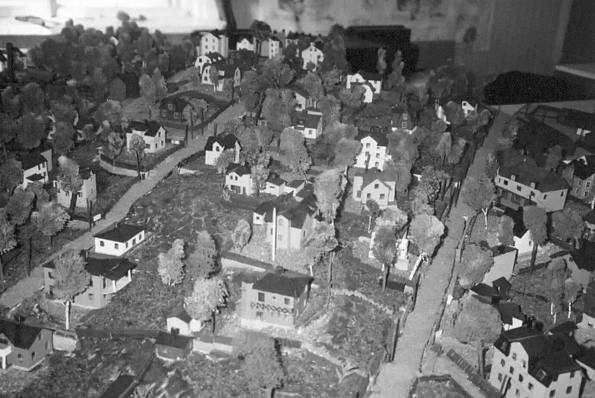 Utställning. Modell över Hagalund gjord av Kent Fernström vilket gav honom SLHs kulturpris 2000.