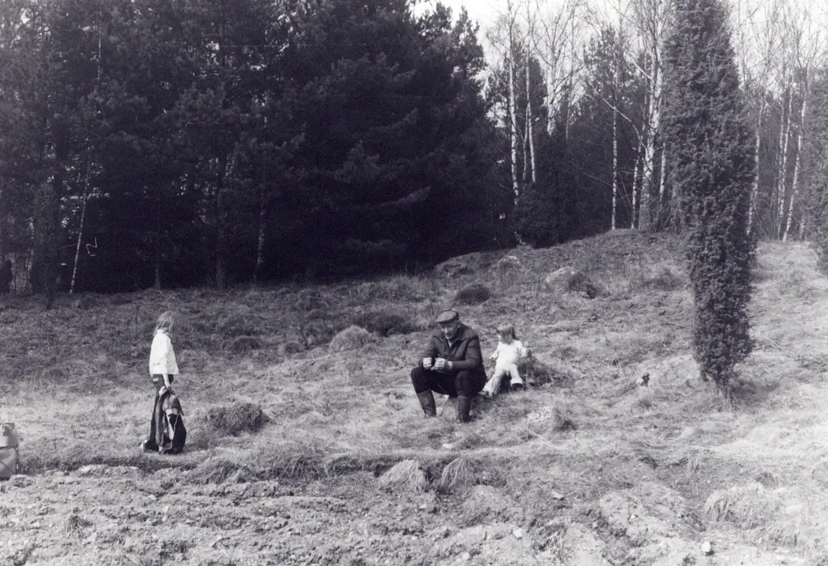 Inför kursen Arkeologi 1980 besöker några blivande kursdeltagare grävningsplatsen.