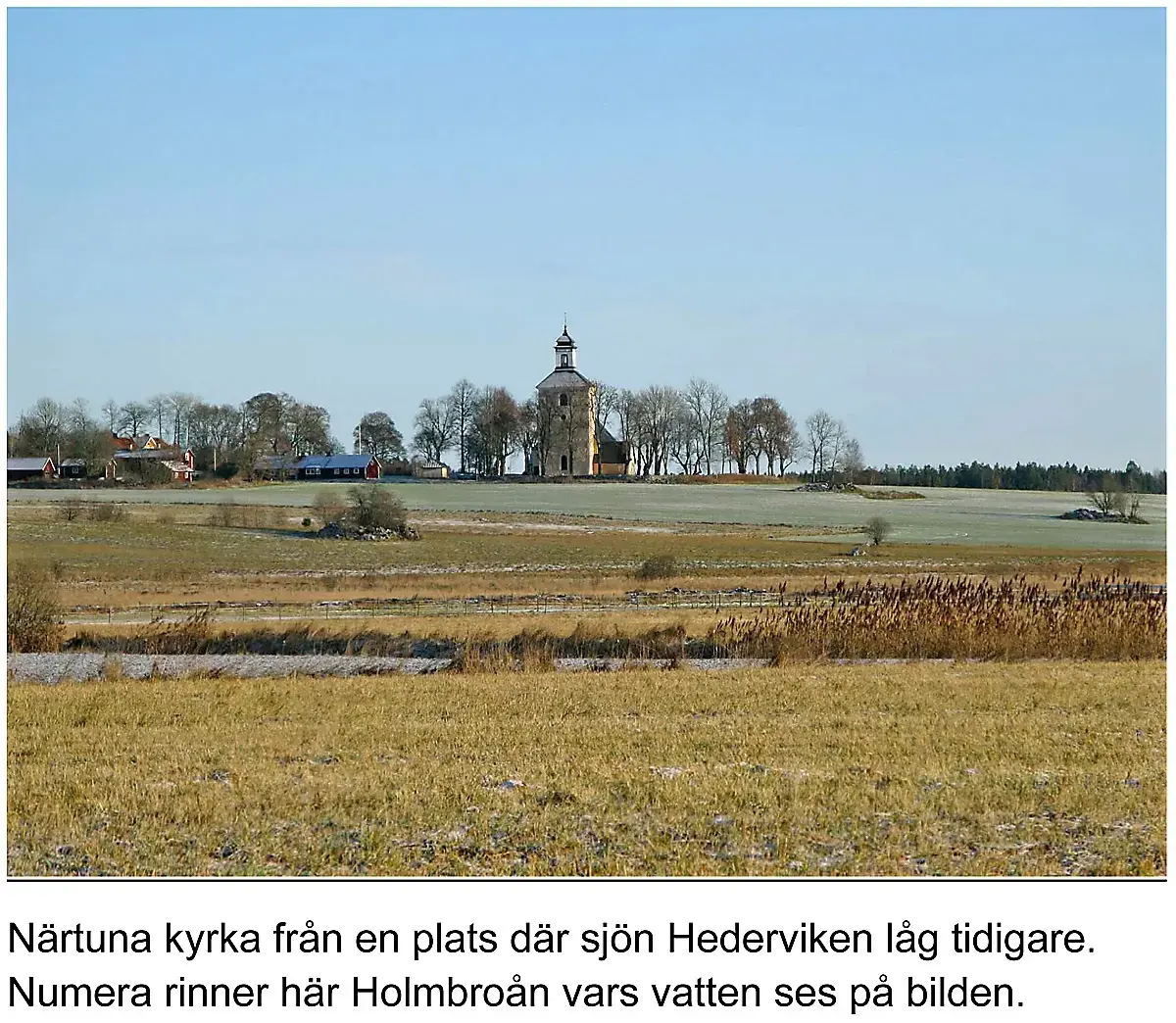 Närtuna Kyrka från en plats där sjön Hederviken låg
