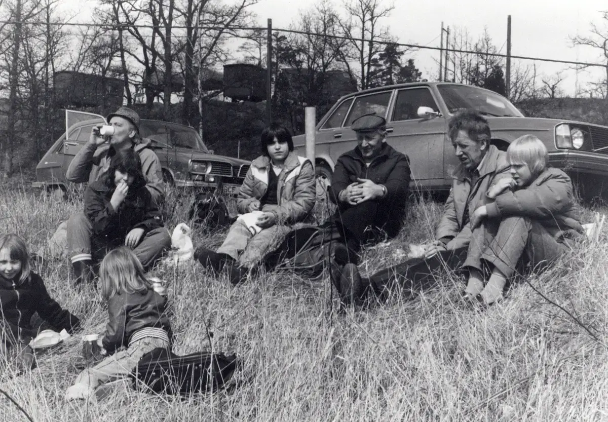 Inför kursen Arkeologi 1980 besöker några blivande kursdeltagare grävningsplatsen.