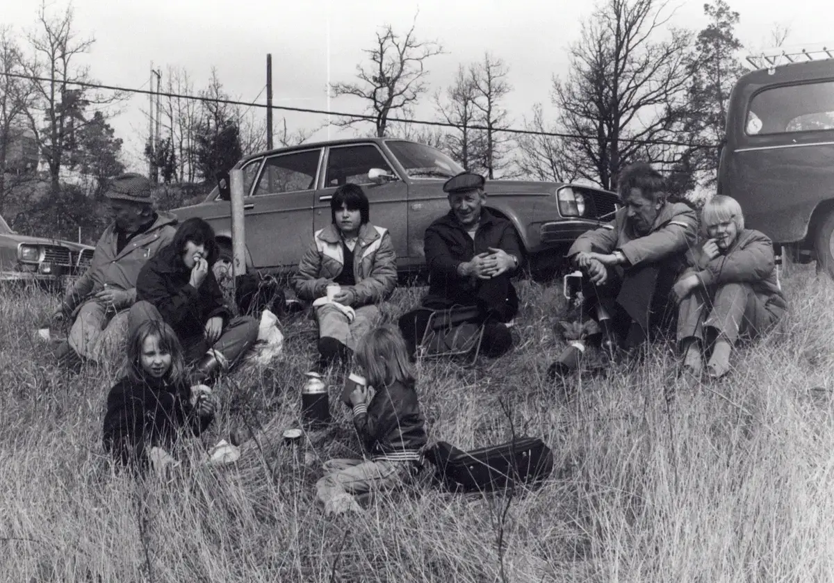 Inför kursen Arkeologi 1980 besöker några blivande kursdeltagare grävningsplatsen.