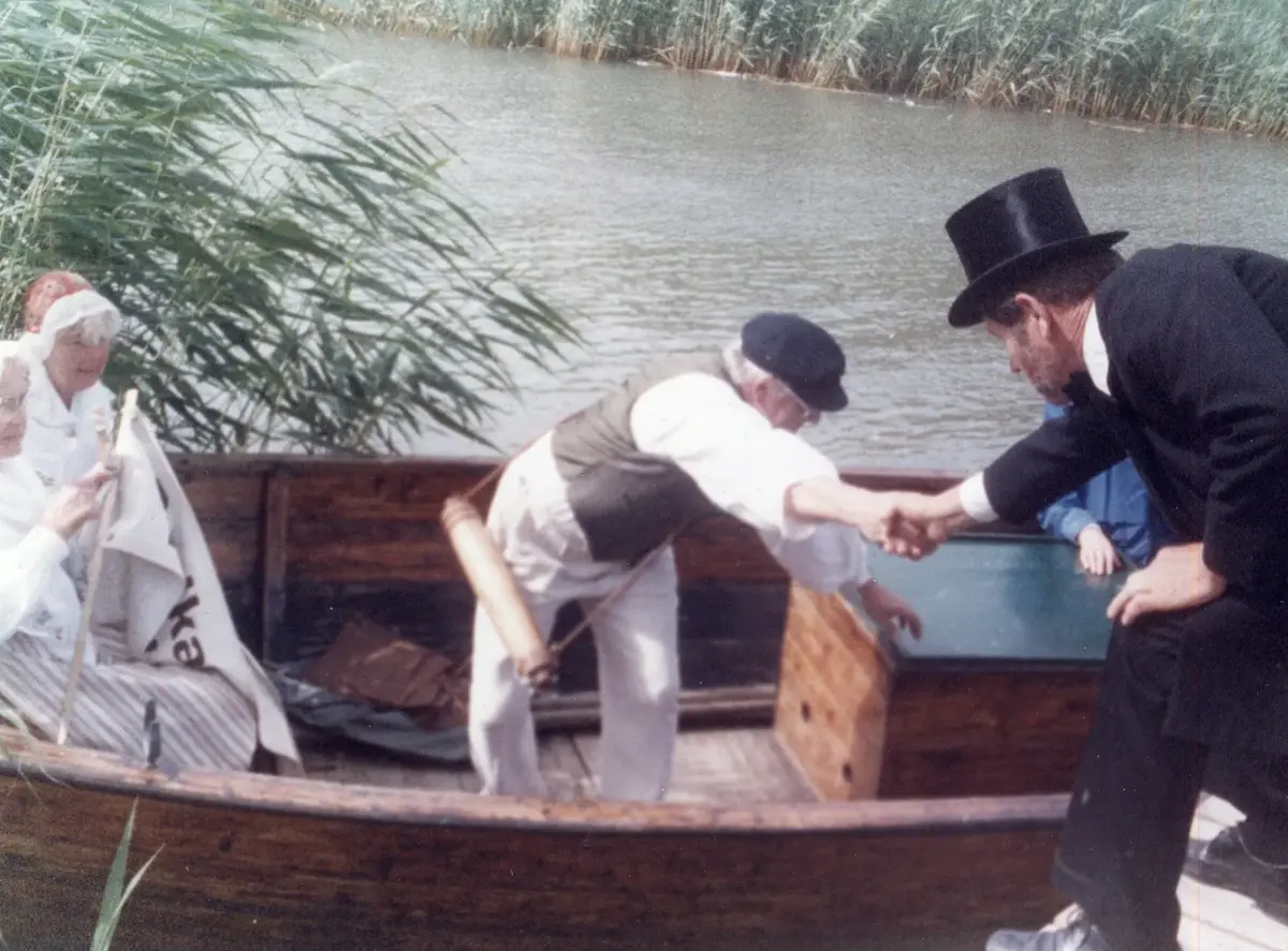 Budkaveln överlämnas av Strömma hembygdsförening vid Ingarö brygga.