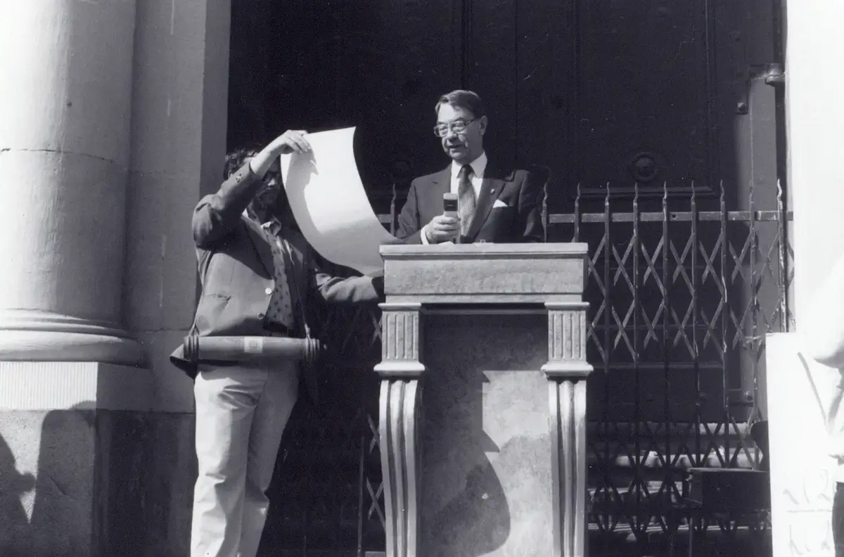 Titel: Start av Budkaveln. Stortorget i Gamla stan.