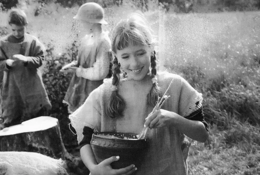 Ungdomsverksamhet. Klass 5 lever stenåldersliv i Forn-Åker i Åkers-Runö.