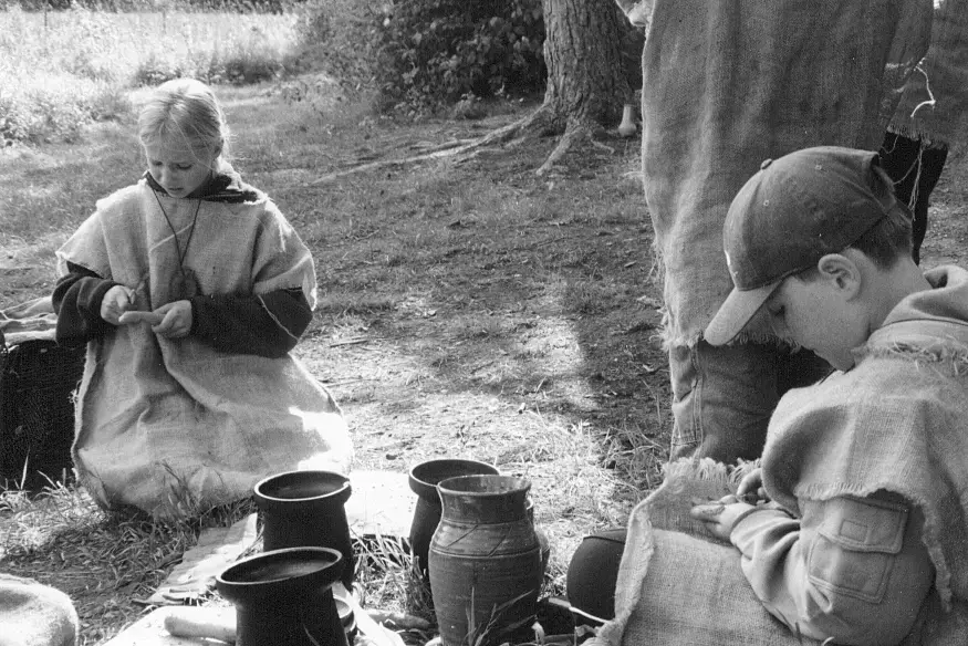 Ungdomsverksamhet. Klass 5 lever stenåldersliv i Forn-Åker i Åkers-Runö.