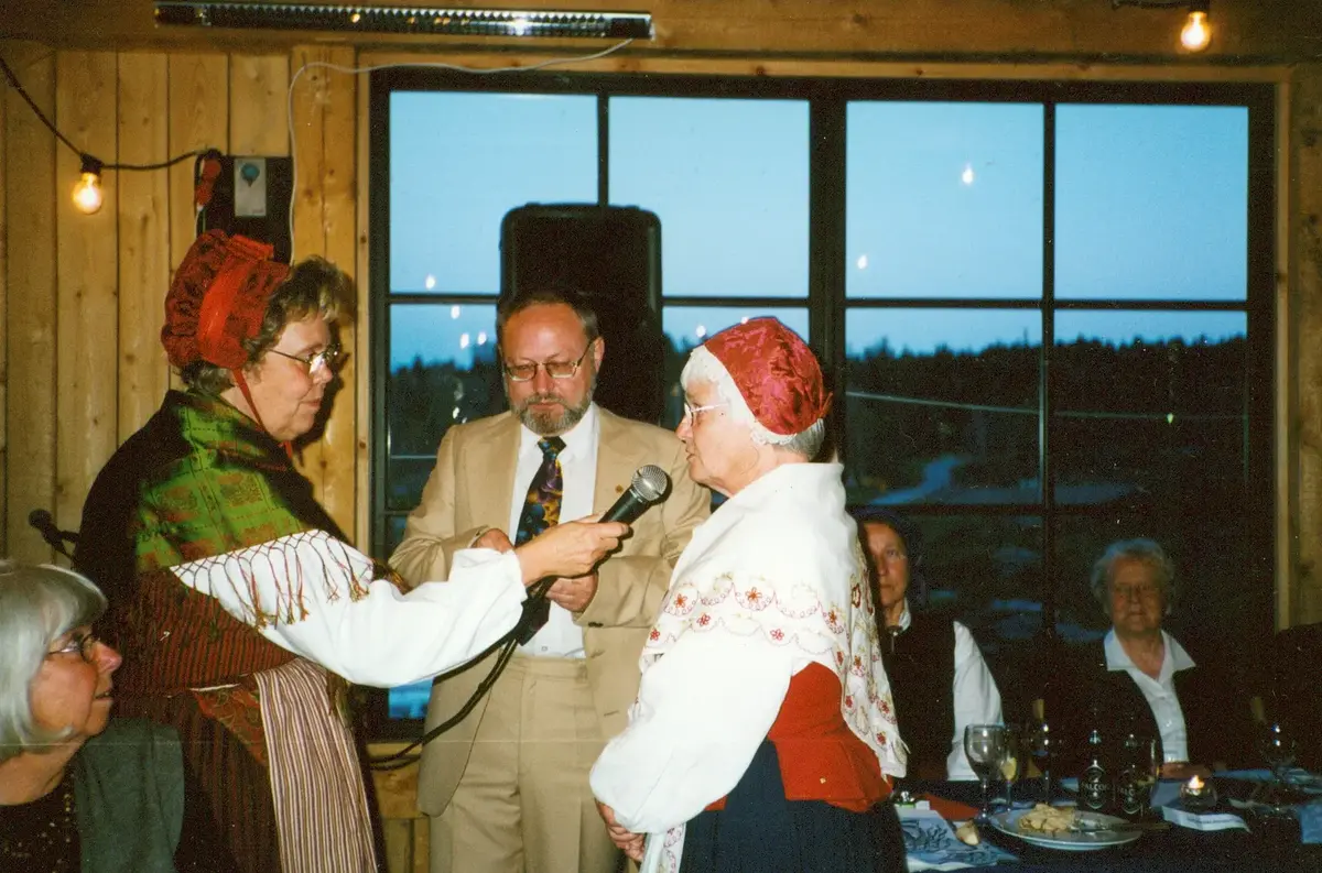 Kjell Nilsson uppvaktar Tyresö hembygdsförening vid jubileet 2003 (40 år).