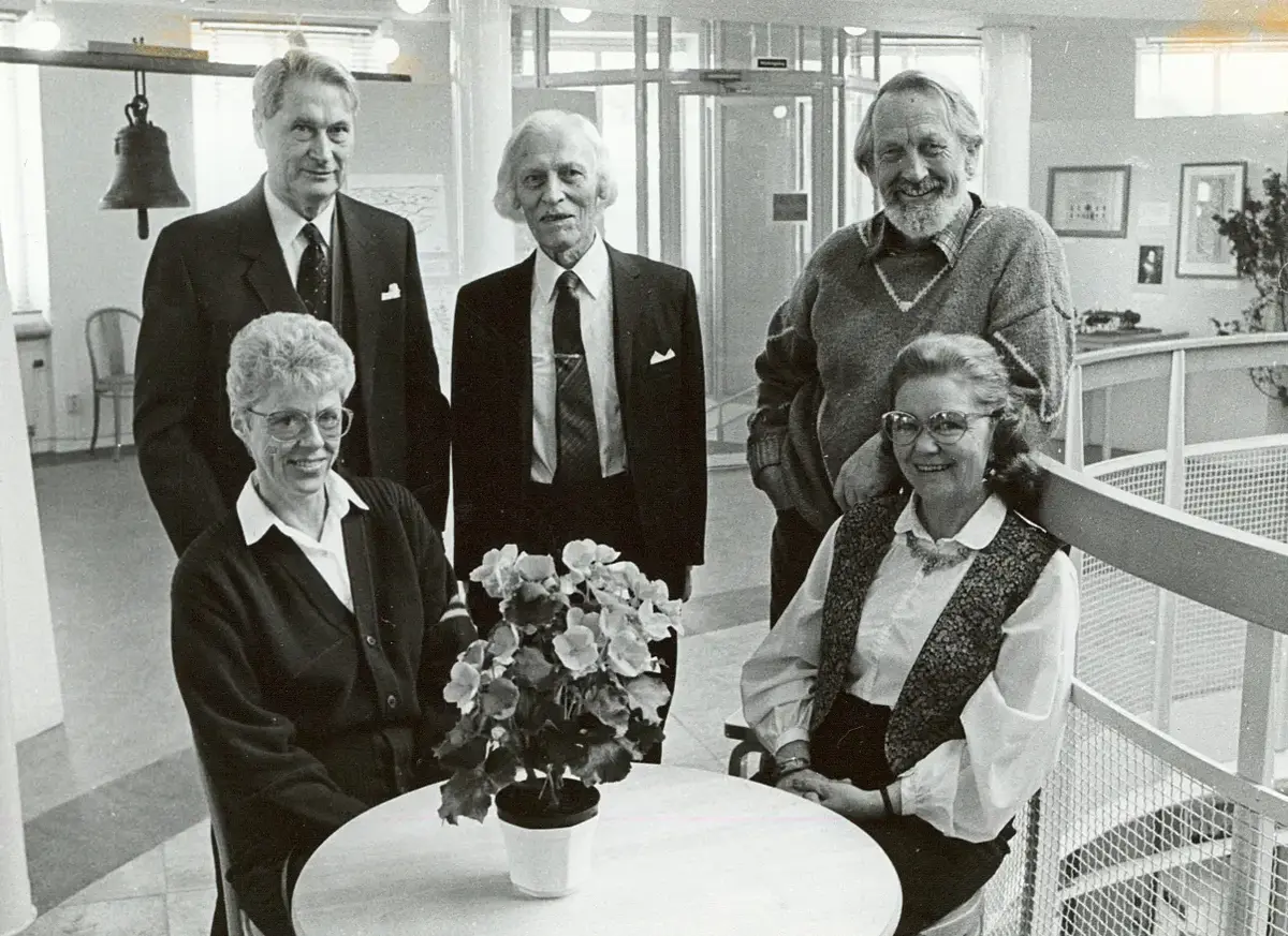 Mottagare av Värmdö kommuns kulturpris 1989. Sittande från vänster: Britt-Marie Ohlsson och Gudrun Gröndahl, Strömma. Stående från vänster: Lennart Backman.
