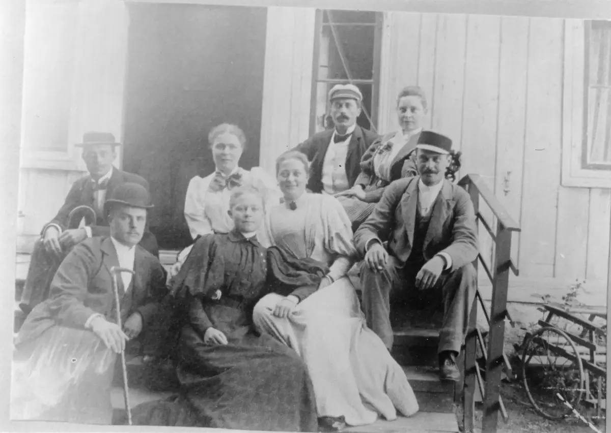 Fågelbro. Gruppbild på trappan