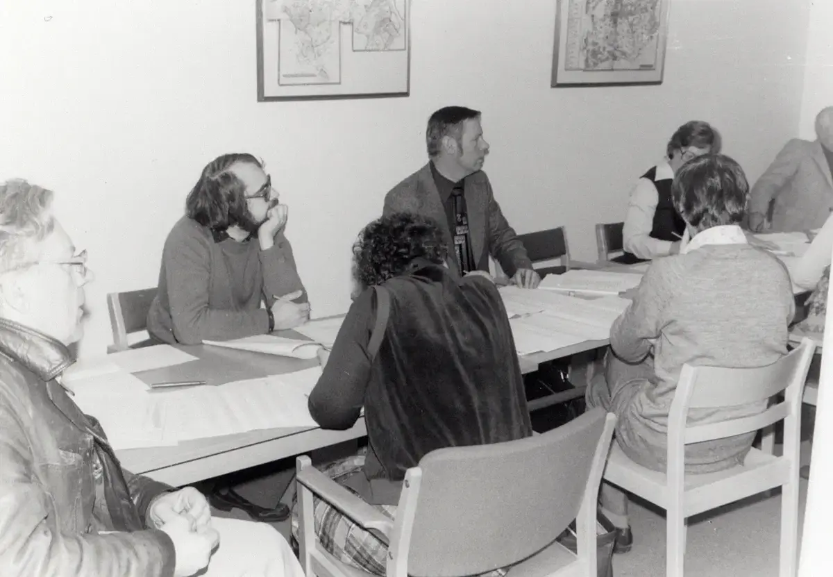 Hembygdsförbundets kurs i bokföring och deklaration i Huddinge bibliotek 1979-11-10. Kursledare Kamrer Olle Thorell.