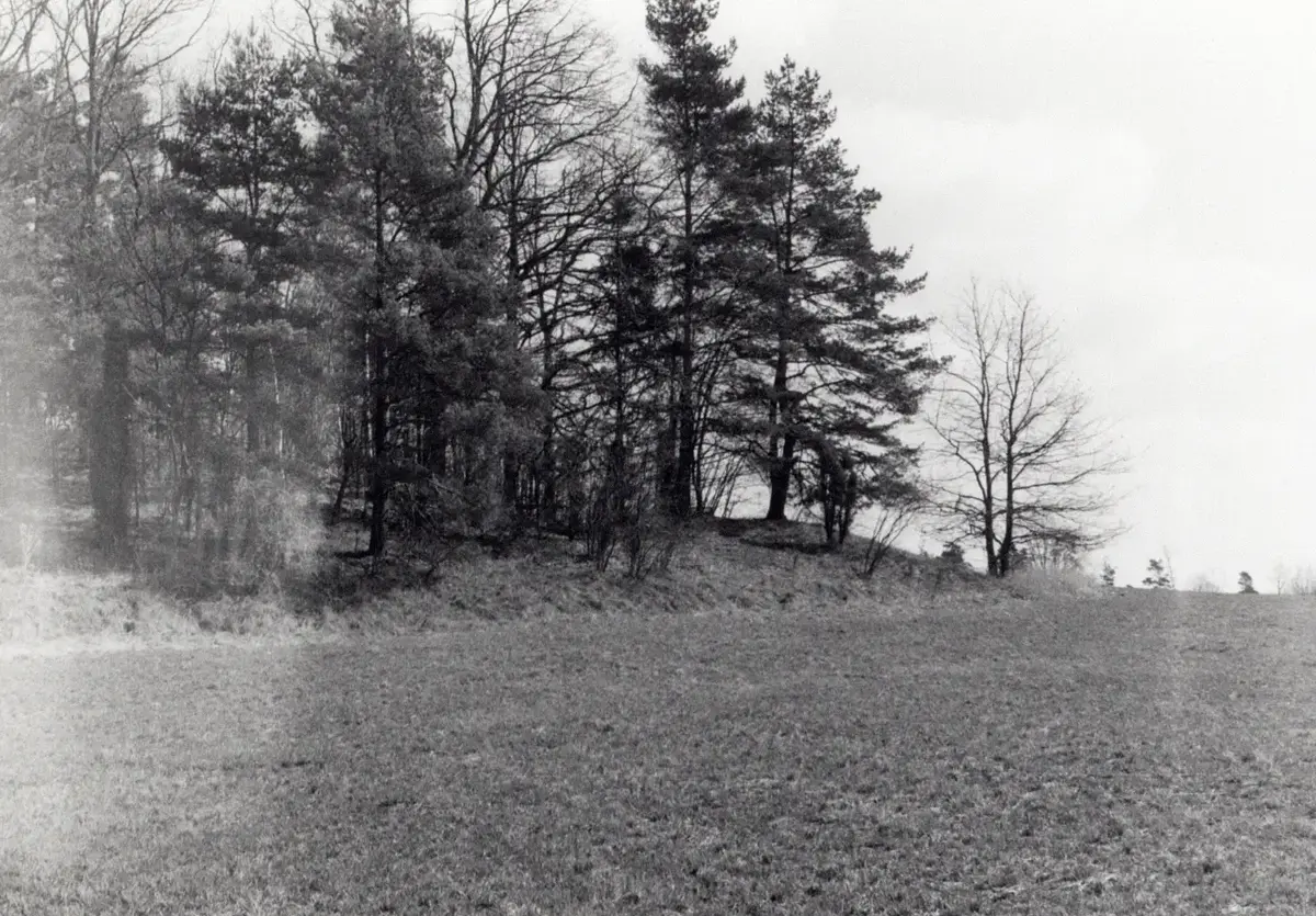 Grävningsplatsen fornlämning 23 Skäve, Järna socken besöks av några kursdeltagare inför 1980 års arkeologikurs.