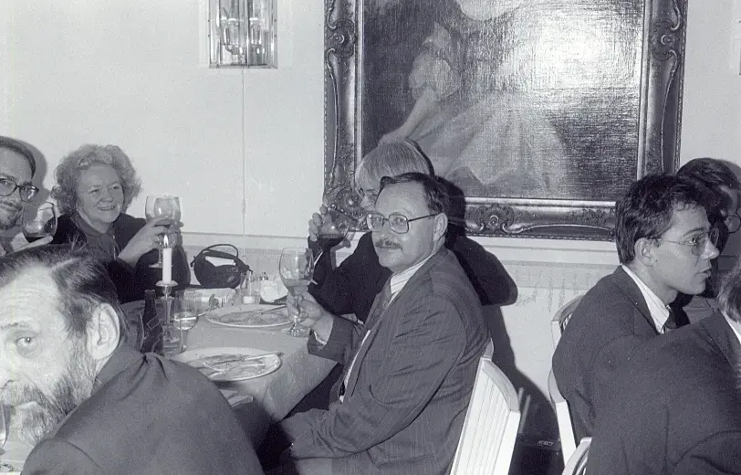 Middag för 1993-års kulturpristagare Jan Bergman och avtackning av Anna Lindeberg och Leila Miller. Sture Wärlinder, Jan Bergman, Gudrun Gröndahl, Anna Lindeberg, Kjell Nilsson.