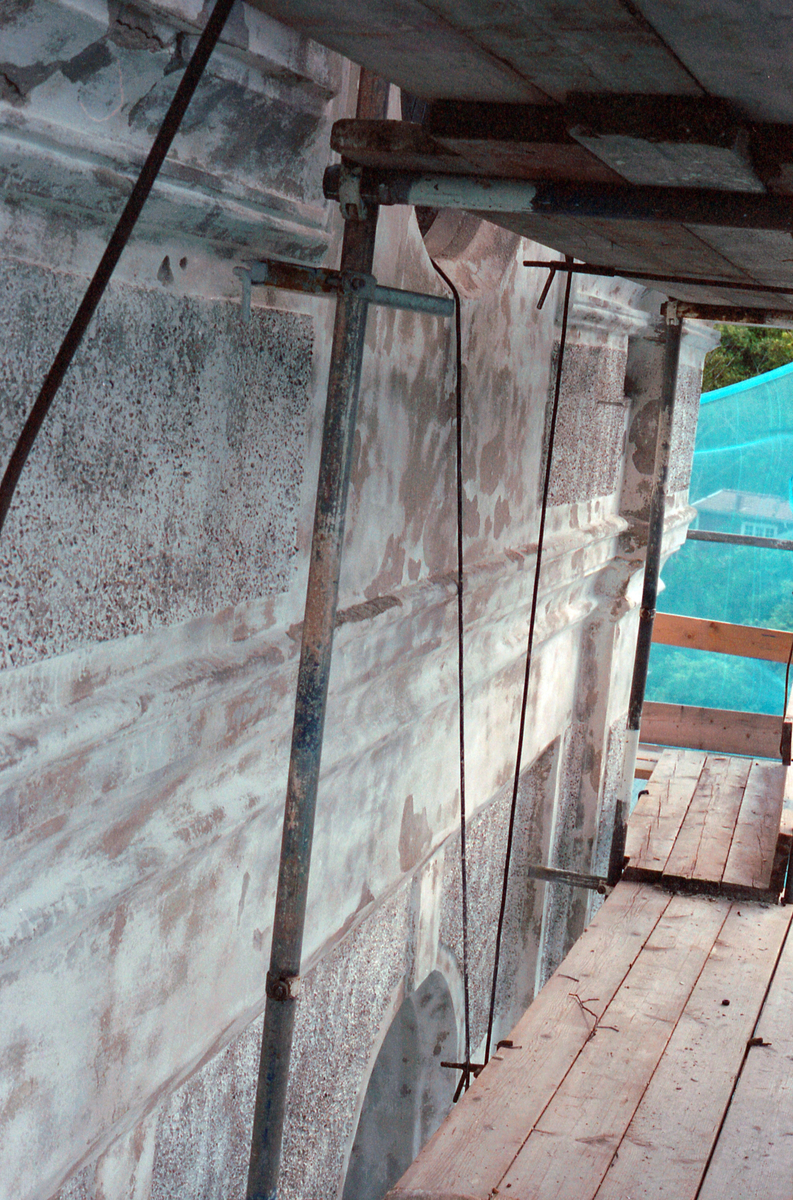 Västerlanda kyrka, blästrat torn ska putslagas, avfärgas.