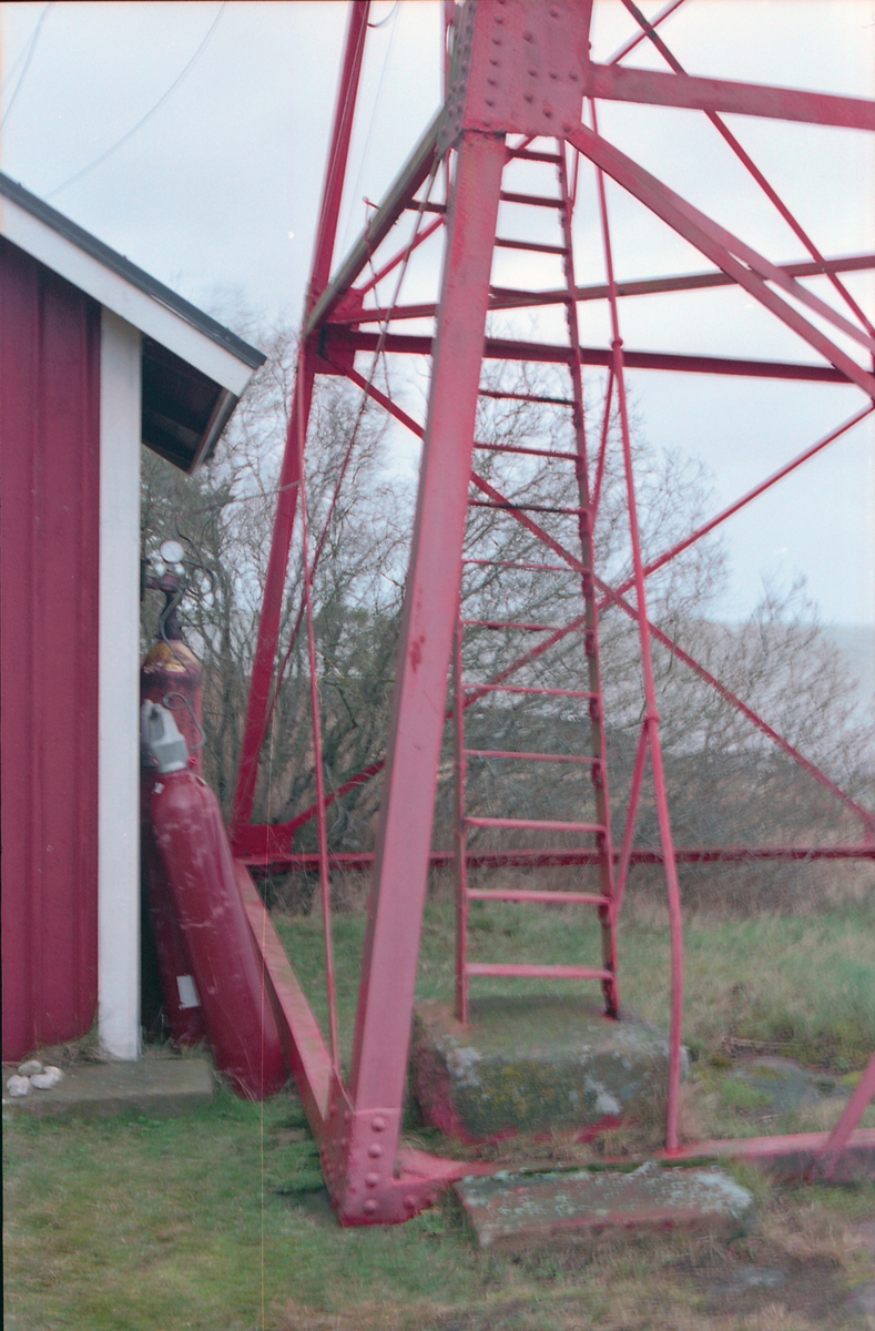 Gälleudde fyrplats. Del av fyrtornet, oljeboden och gasreserven från S