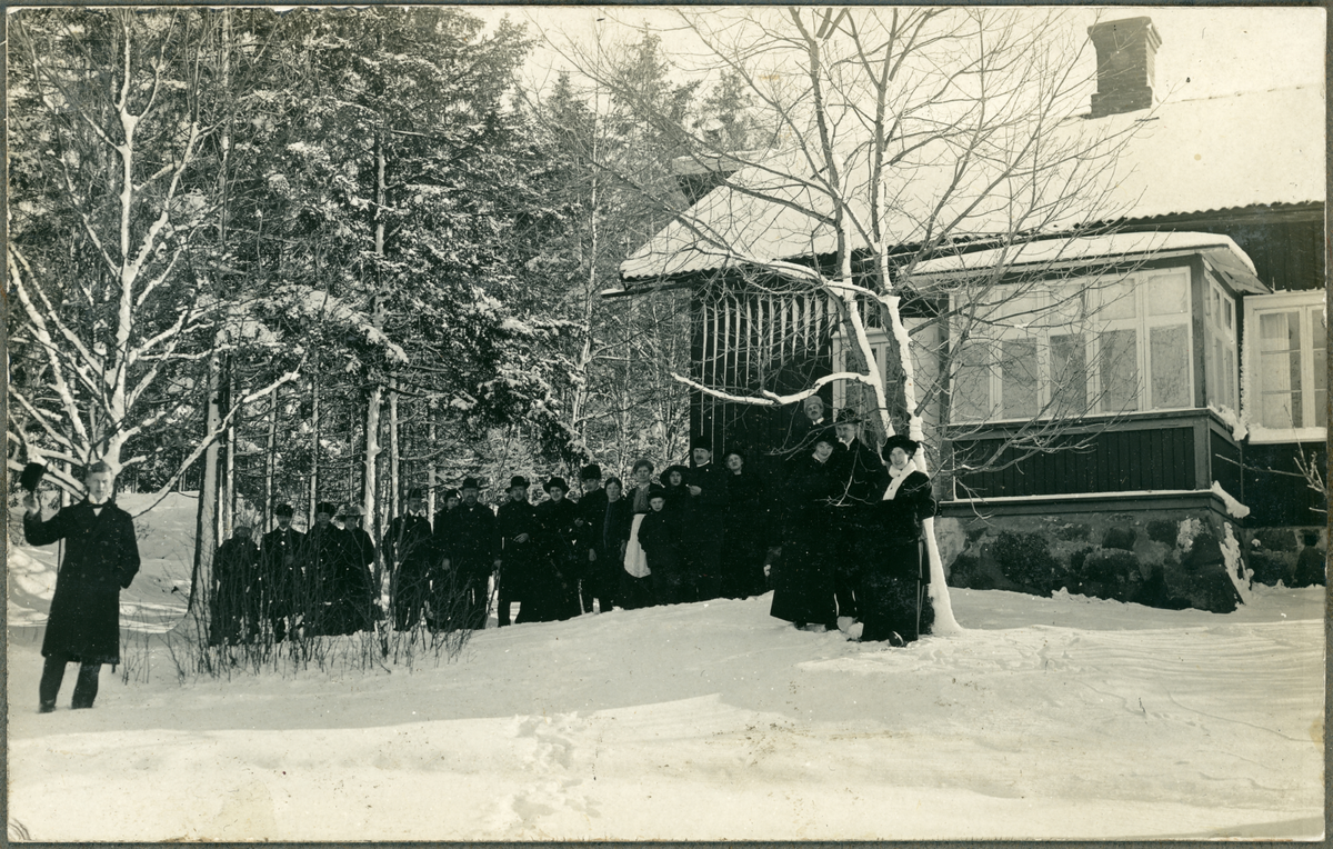 Vänersborgs vandrareförening. Gruppbild framför byggnad