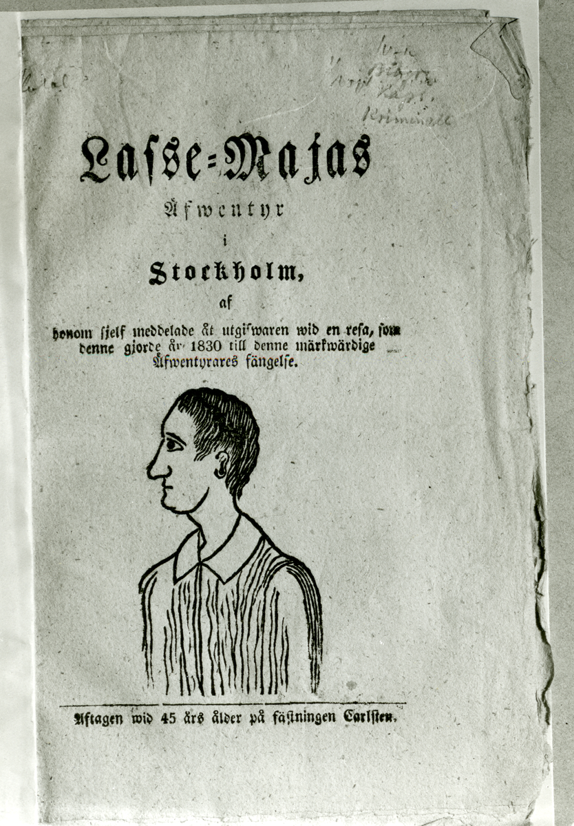 Avfotograferad framsida av biografin "Lasse-Majas äfwentyr i Stockholm".