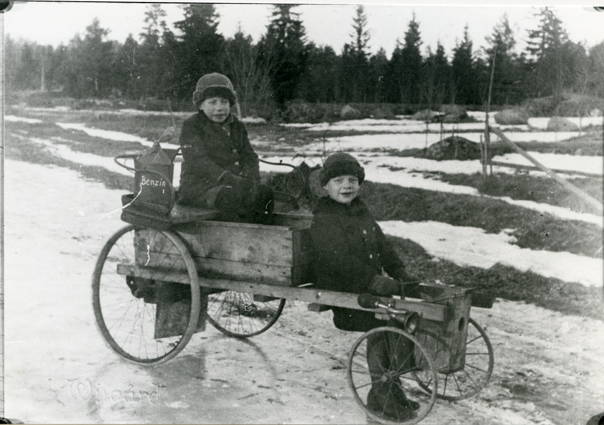 Bertil Pettersson och Axel Ehn med lådbil. 1918-1919.
