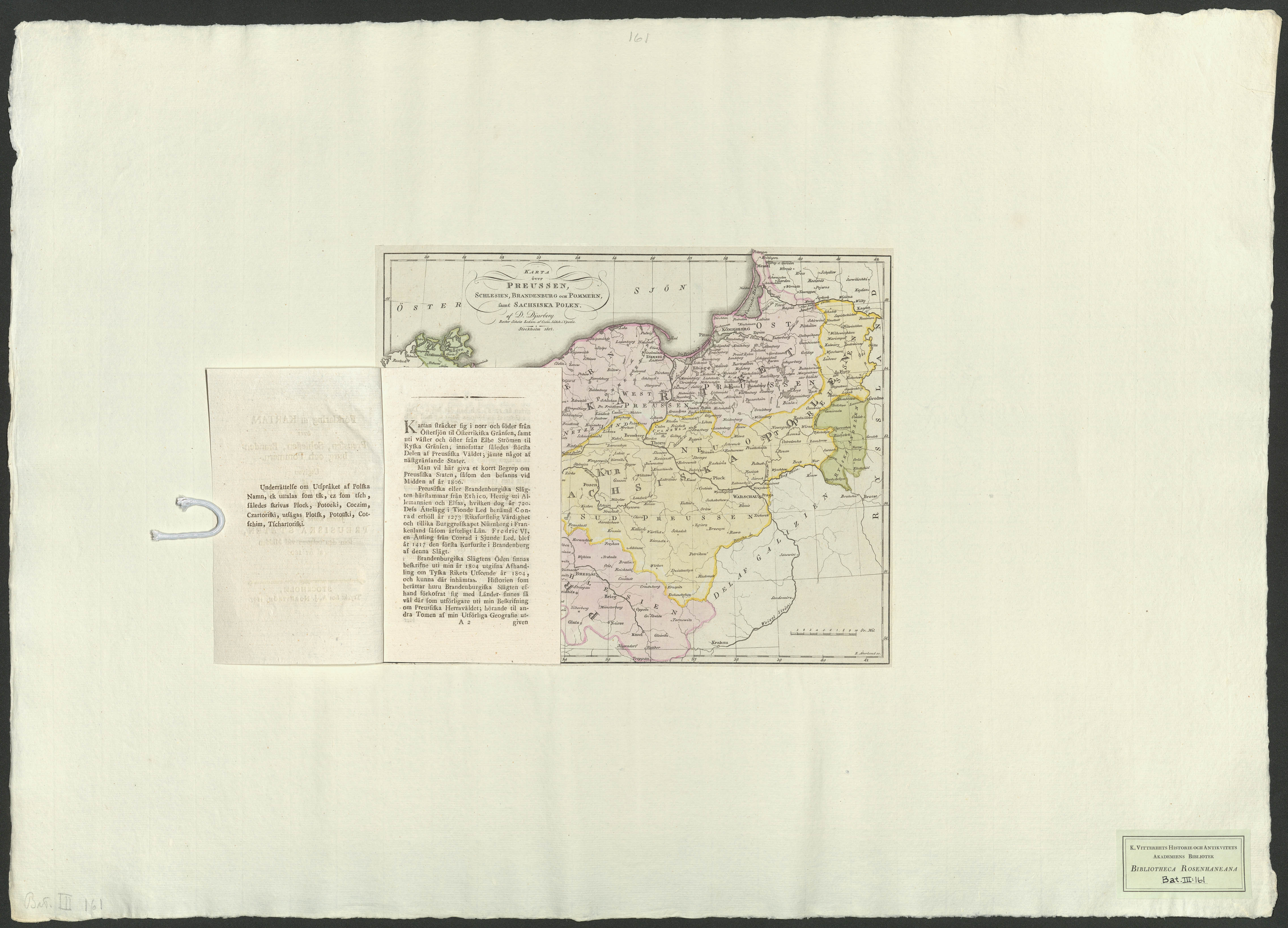 Beskrivning: 1 karta + : Visar delstater, orter och vattendrag. I vidhängande häfte finns förutom förklaringar till kartan även utredning om Preussiska staten. E. Åkerland sc ; af D. Djurberg