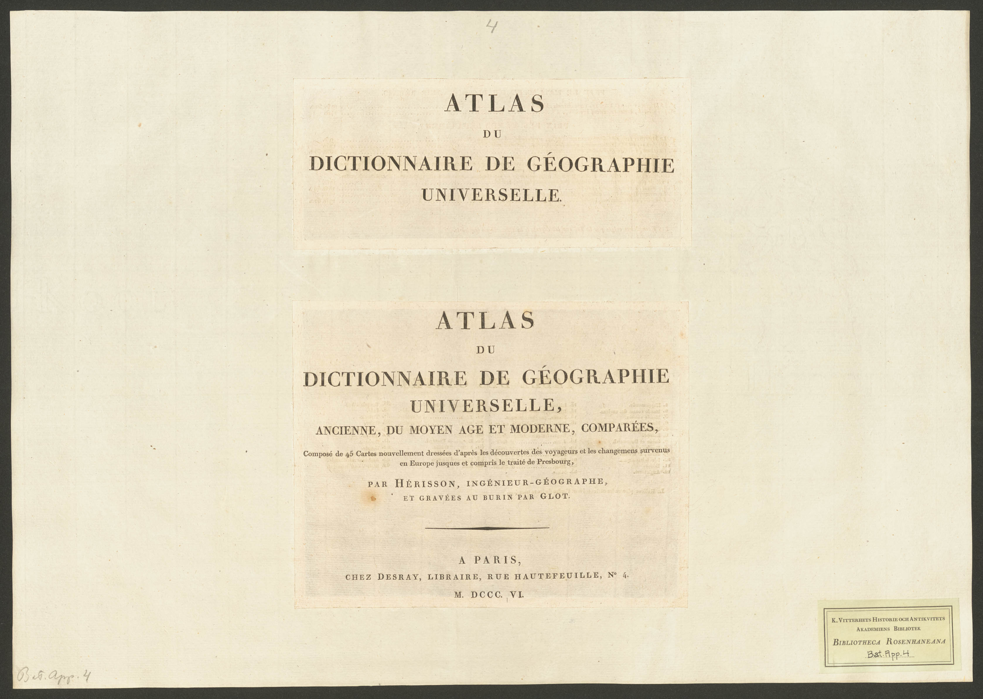 Atlas du dictionnaire de géographie universelle, ancienne, du Moyen Age et moderne, comparées.[Bild] :