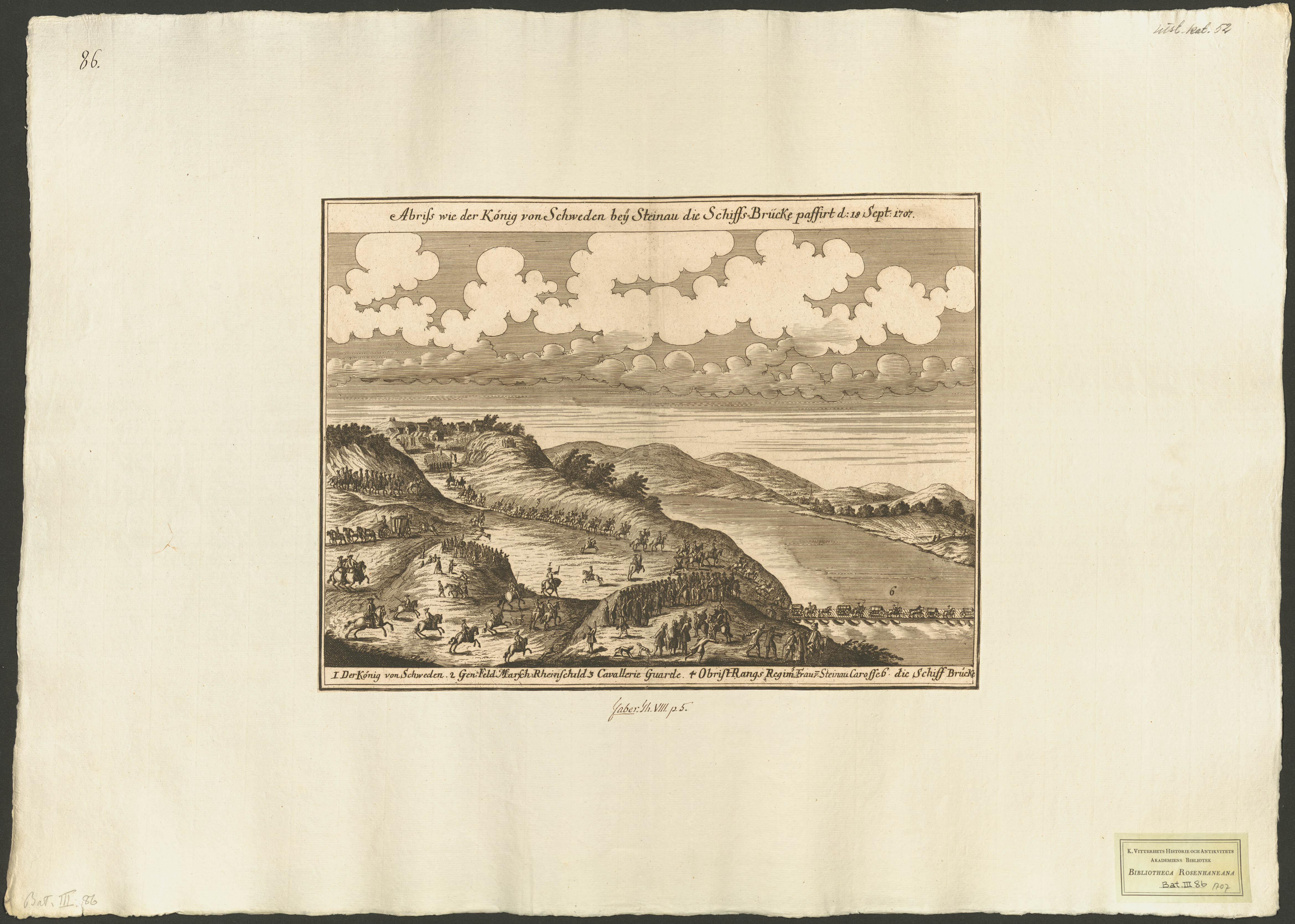 Abriss wie der König von Schweden bei Steinau die Schiffs-Brücke passirt d 18 sept 1707.[Bild]
