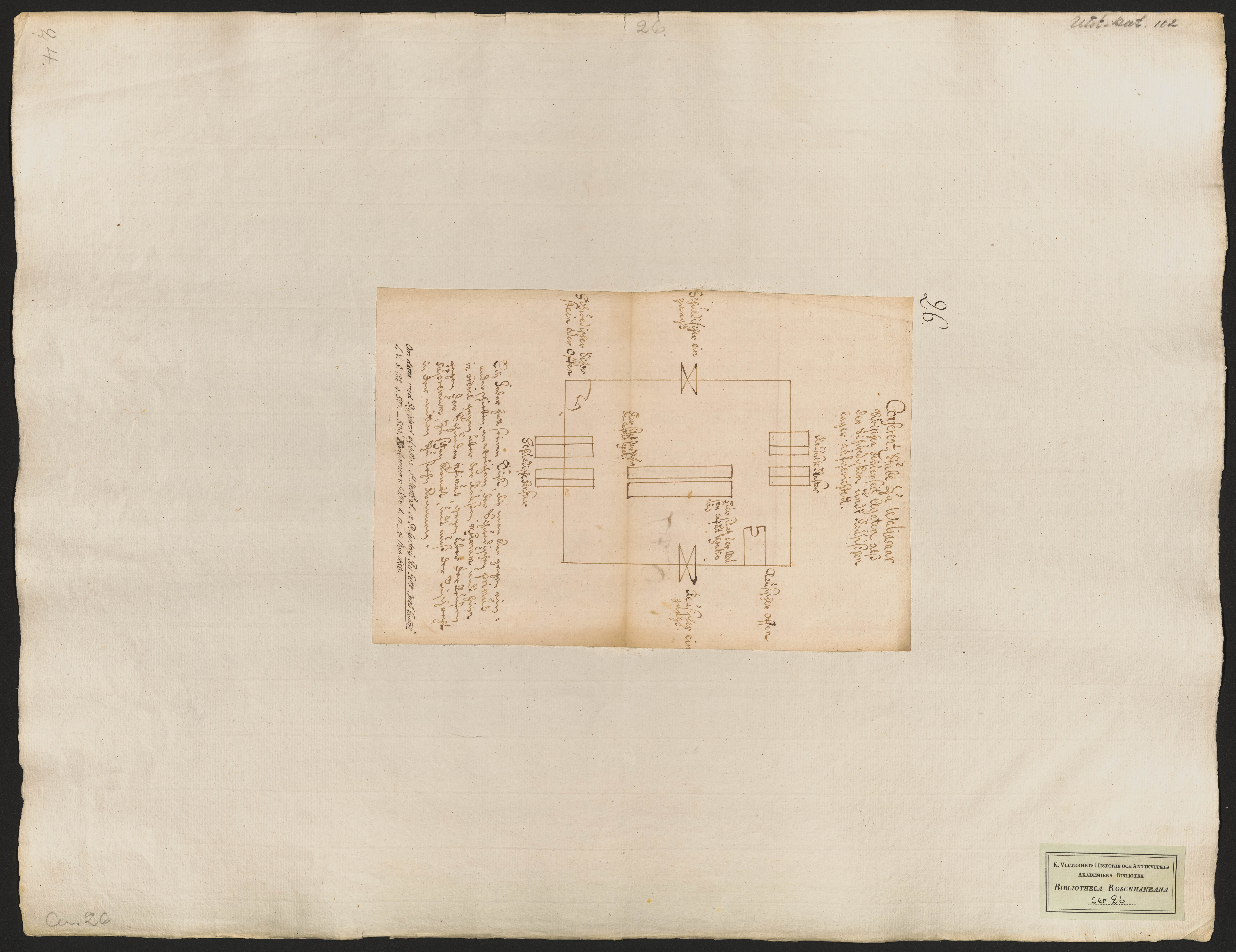 Beskrivning: 1 teckning: Samtida bläckteckning med förklaringar.;Plan över konferensrummet vid underhandlingarna om stillestånd mellan Sverige och Ryssland i Valiesar nov-dec. 1658.